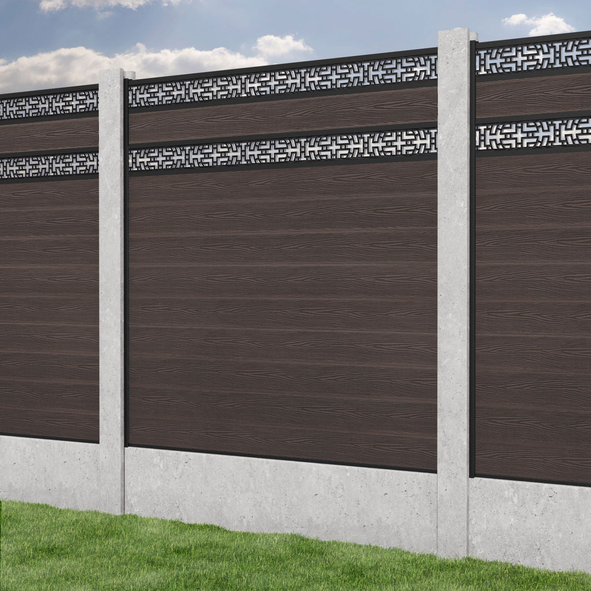 Classic Kumo Split Screen Fence Panel Mid Brown - for existing concrete posts