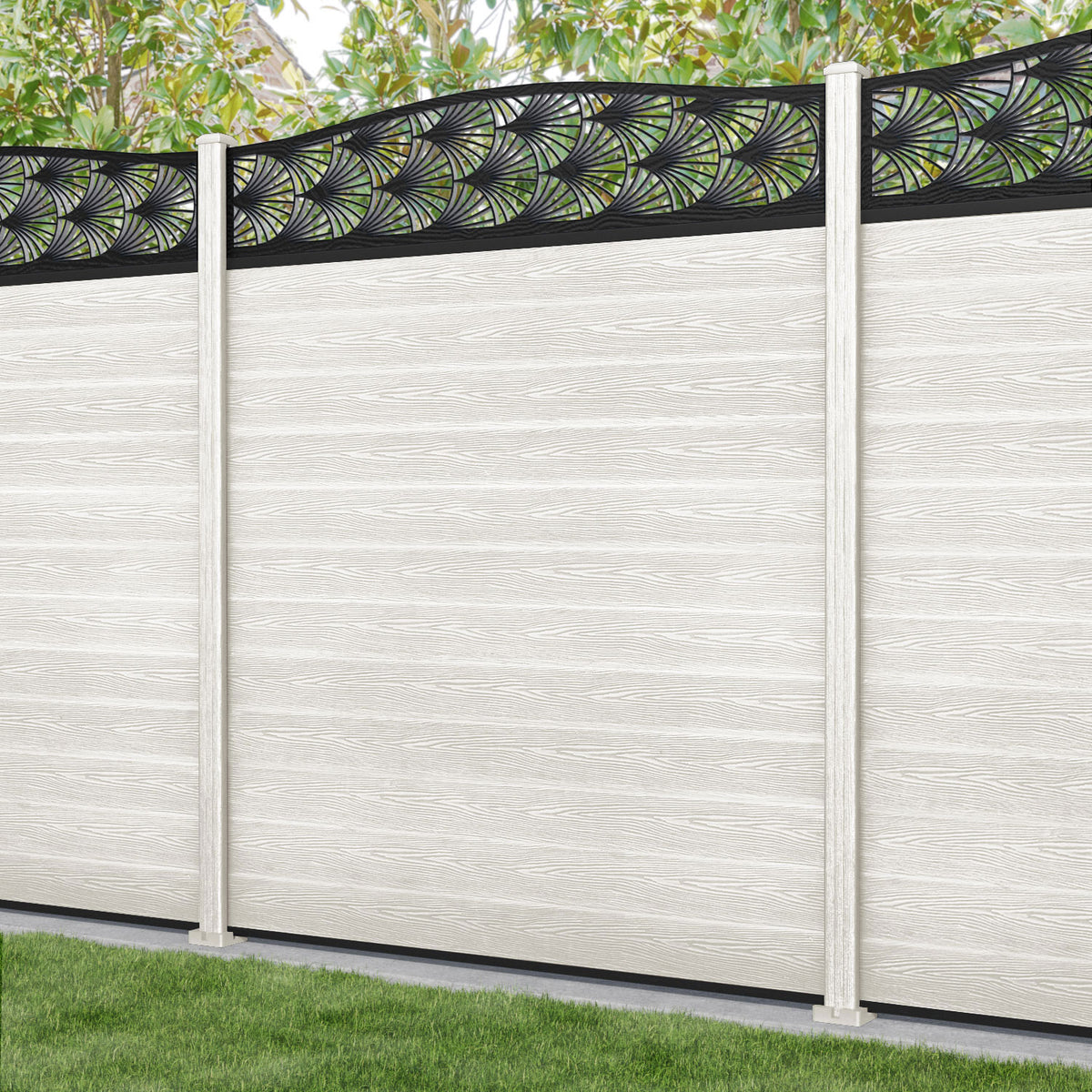 Classic Laurel Curved Top Fence Panel Light Stone - with our composite posts
