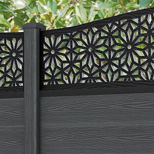 Classic Narwa Curved Top Fence Panel Dark Grey - with our composite posts