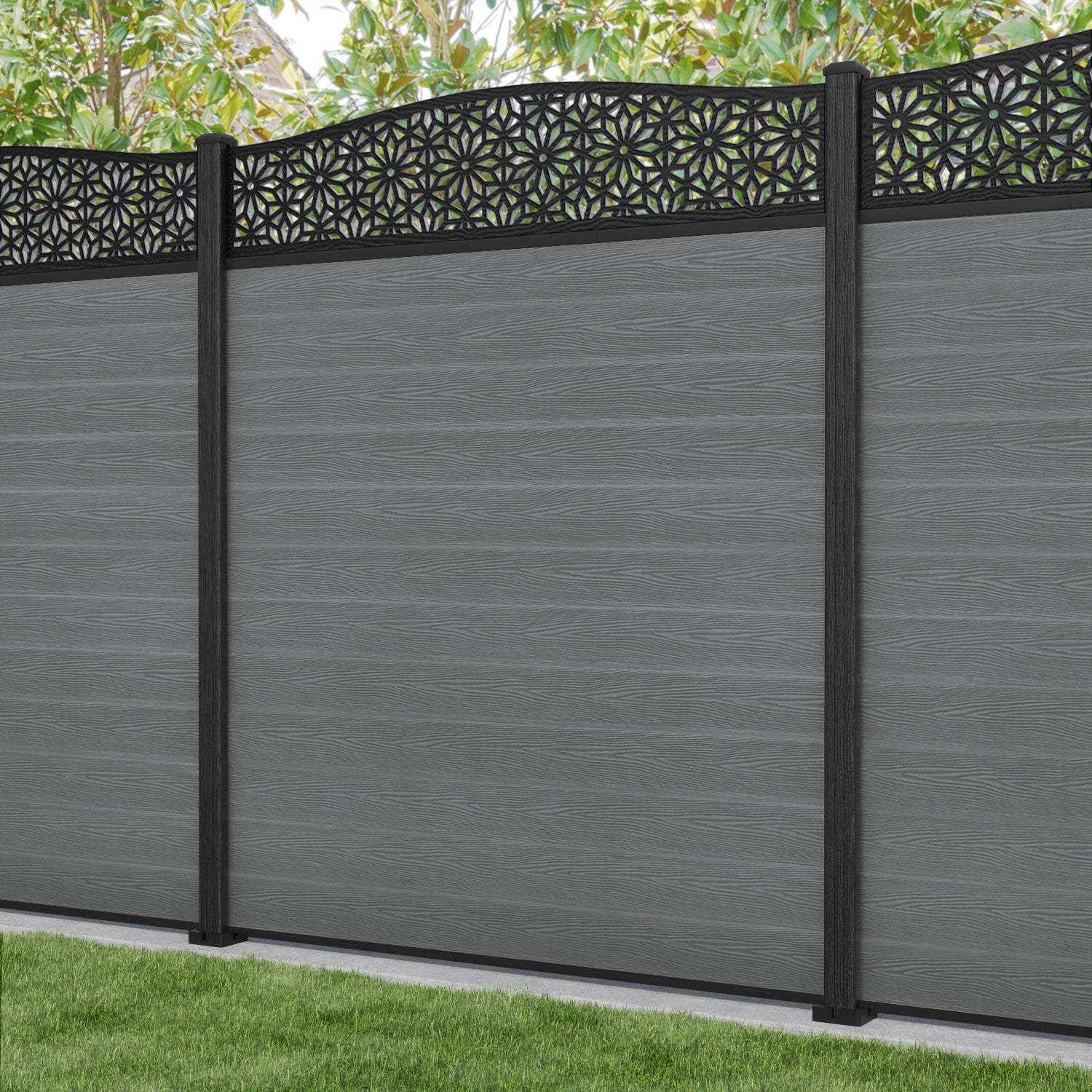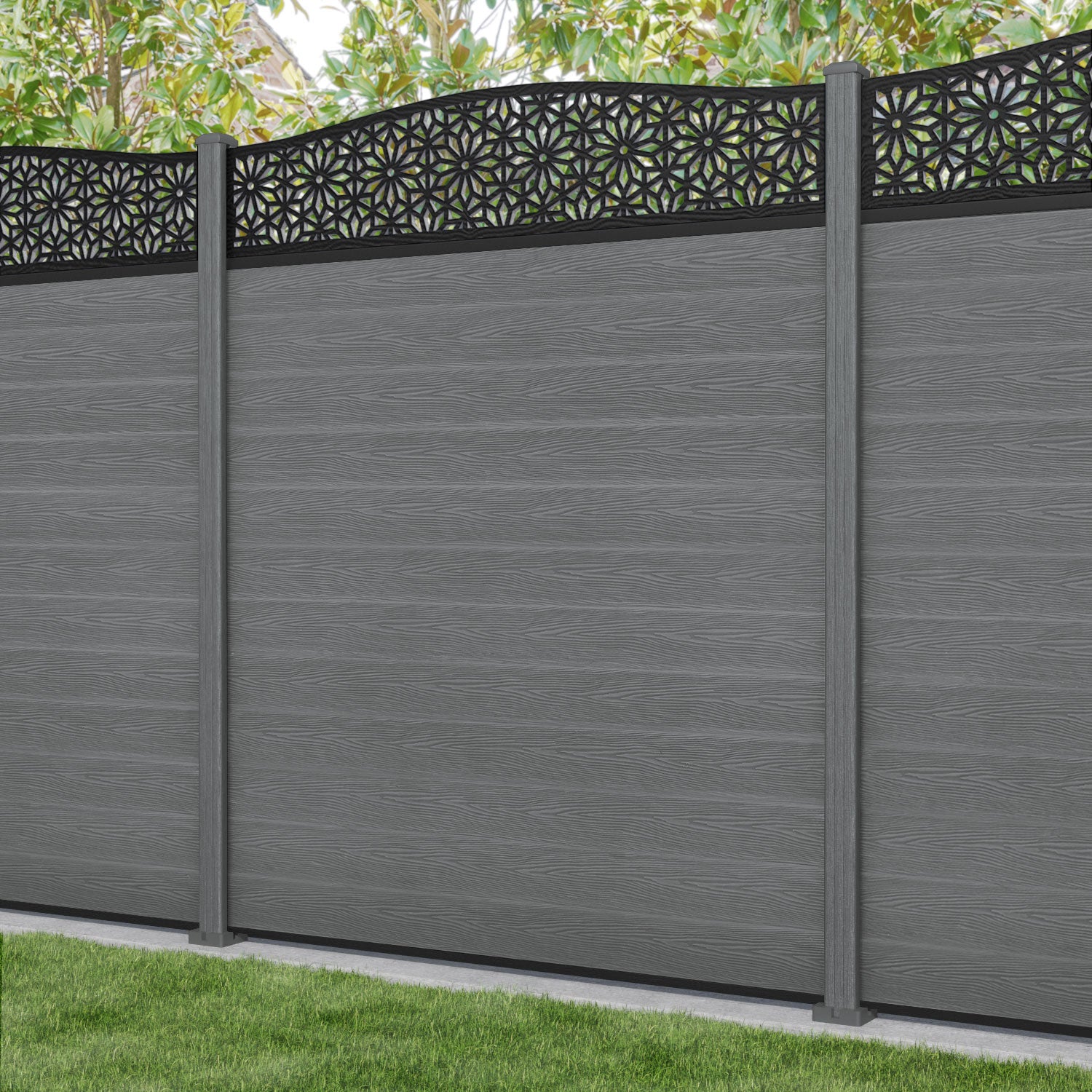 Classic Narwa Curved Top Fence Panel Mid Grey - with our composite posts