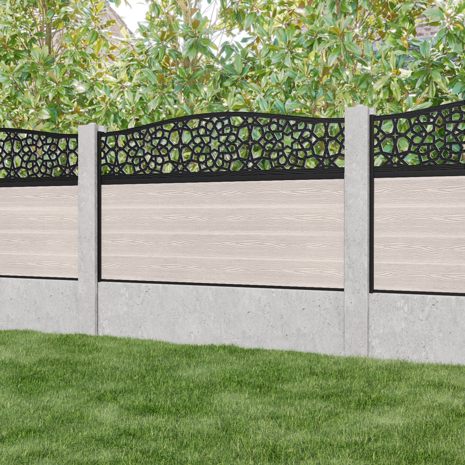 Classic Nazira Curved Top Fence Panel Mid Stone - for existing concrete posts