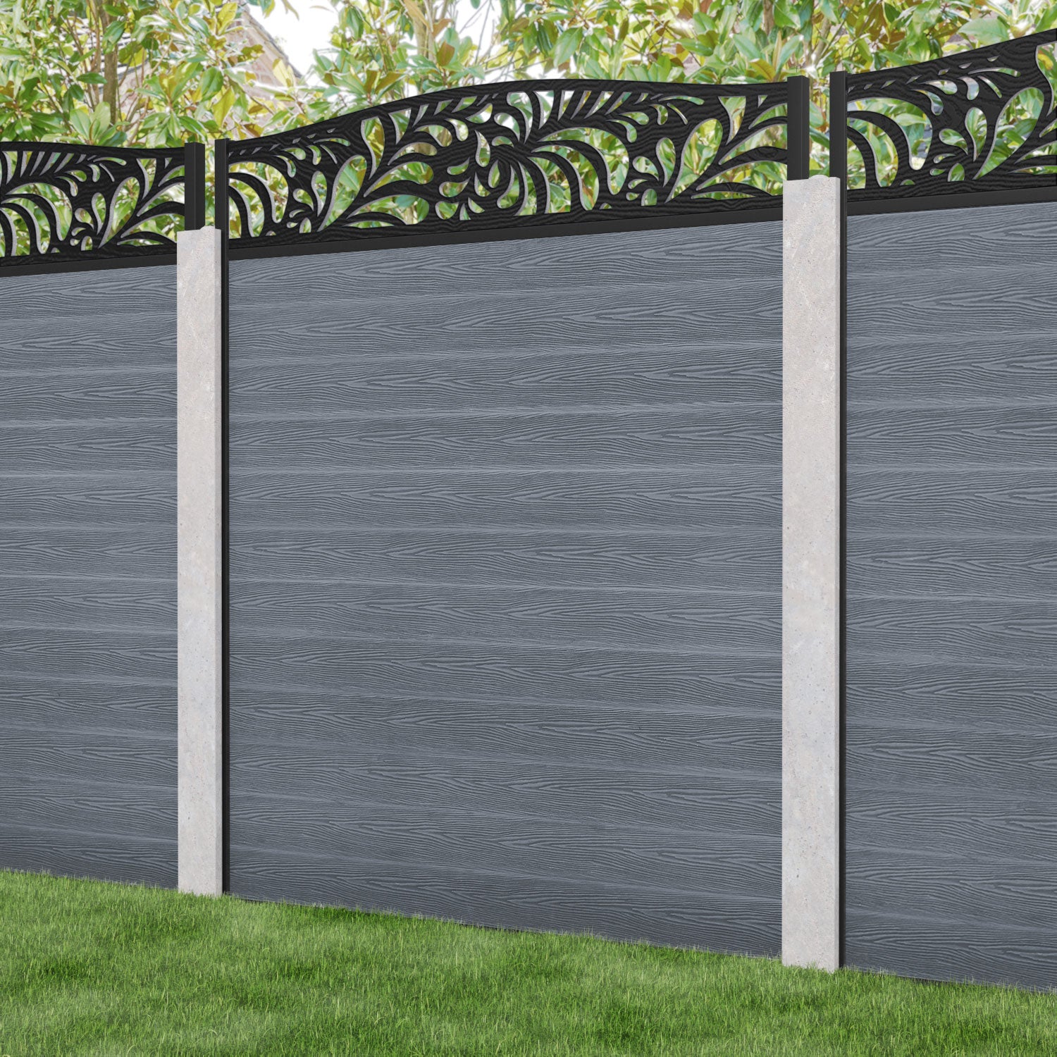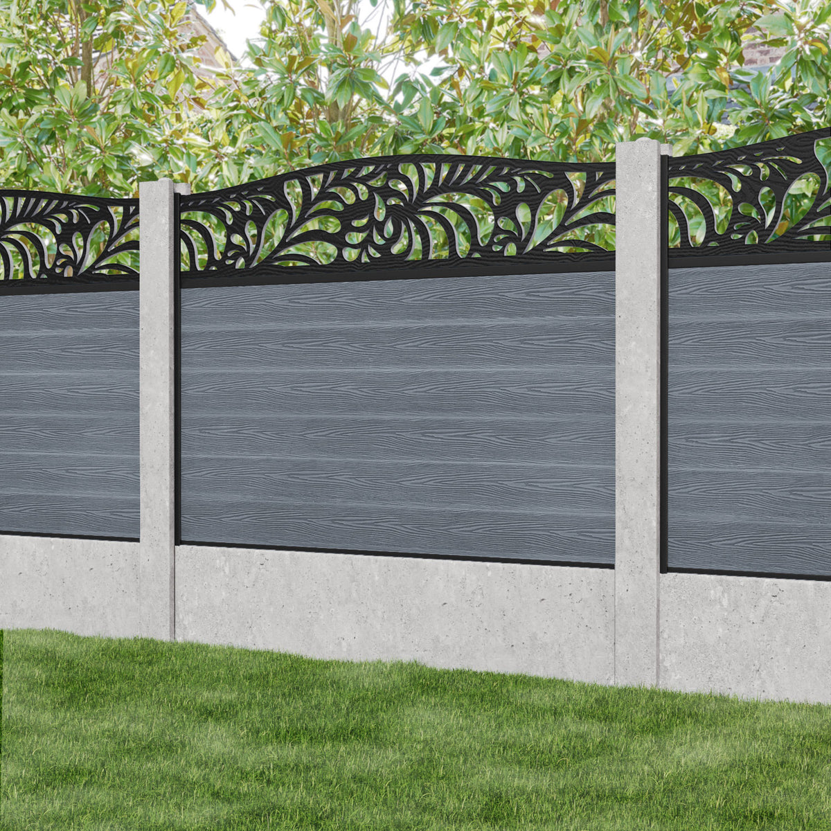 Classic Petal Curved Top Fence Panel Anthracite - for existing concrete posts