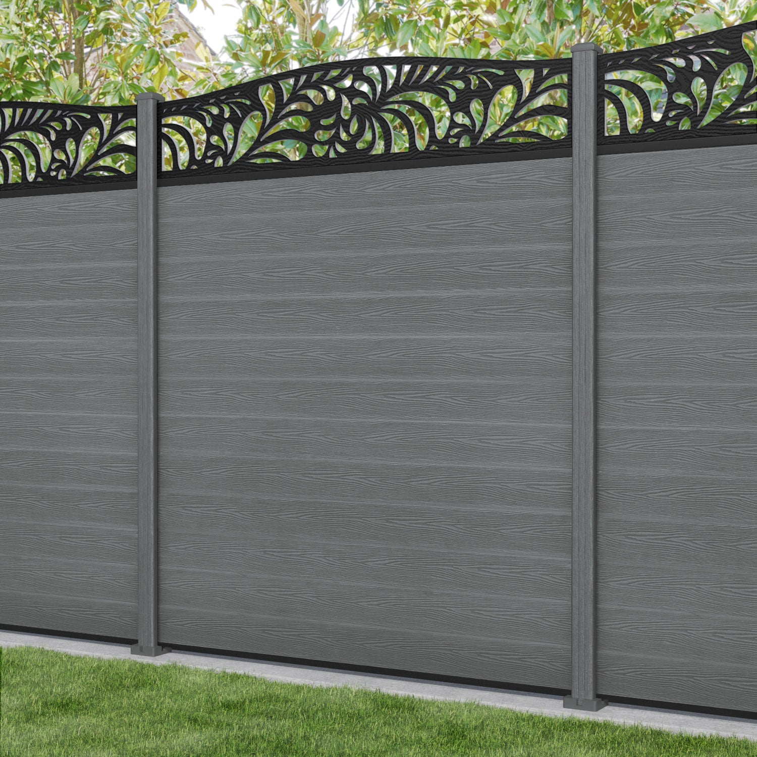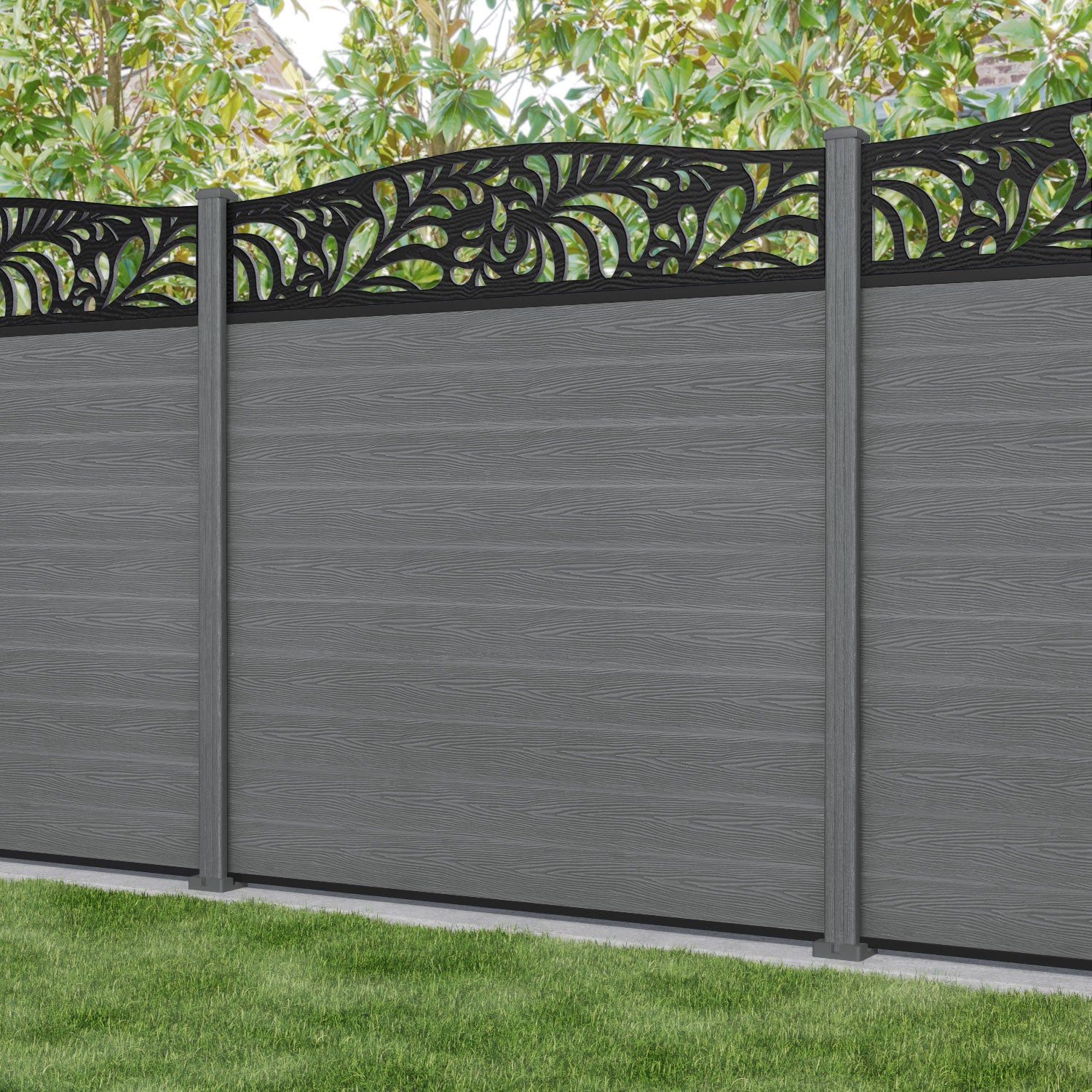Classic Petal Curved Top Fence Panel Mid Grey - with our composite posts