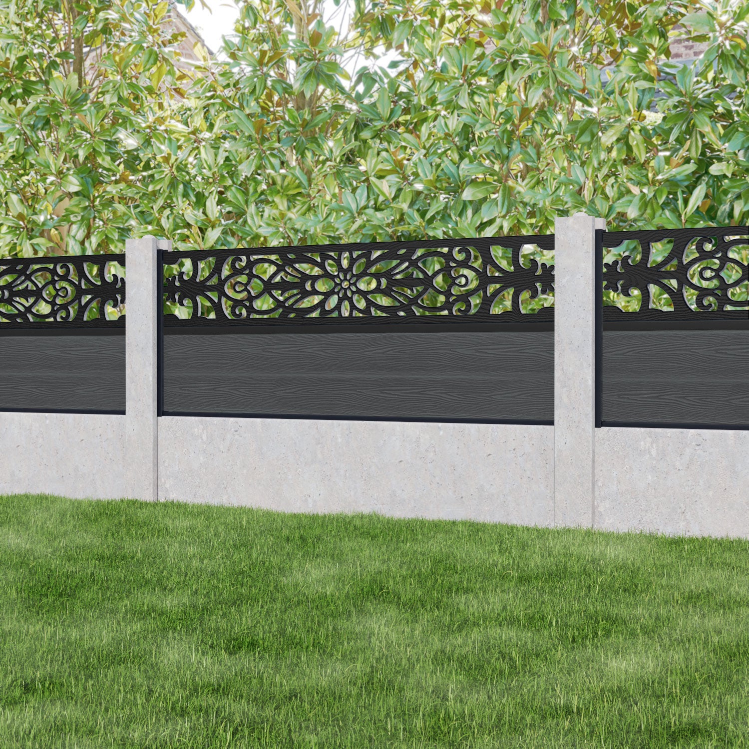 Classic Windsor Fence Panel Dark Grey - for existing concrete posts
