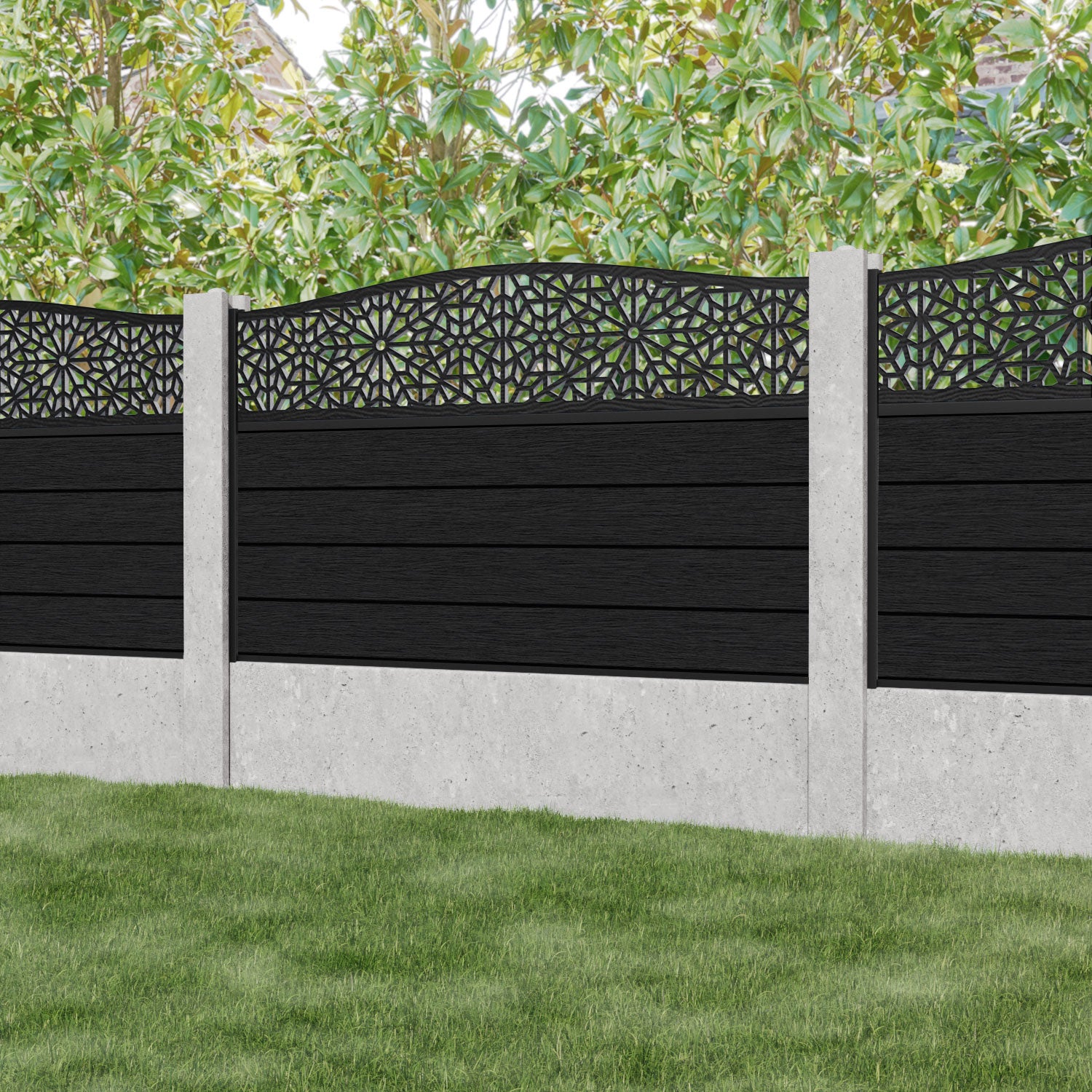 Reference: Fusion Alnara Curved Top Fence Panel - Black - for existing concrete posts