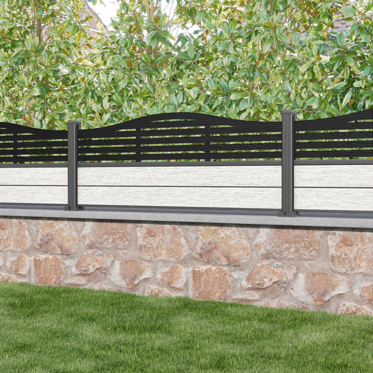 Fusion Aspen Curved Top Fence Panel Light Stone - with our aluminium posts