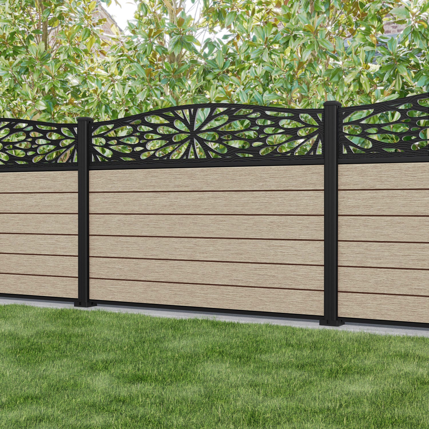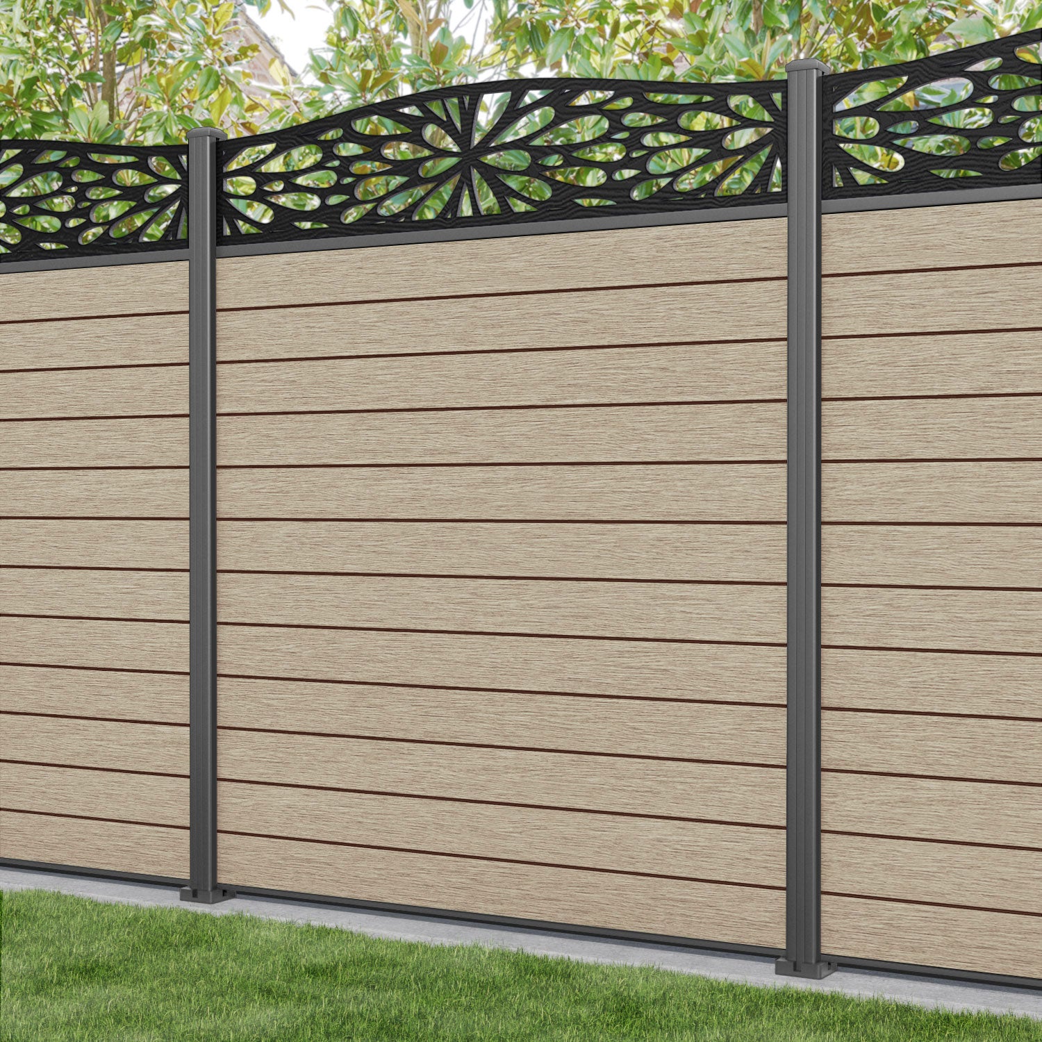 Fusion Blossom Curved Top Fence Panel Light Oak - with our aluminium posts