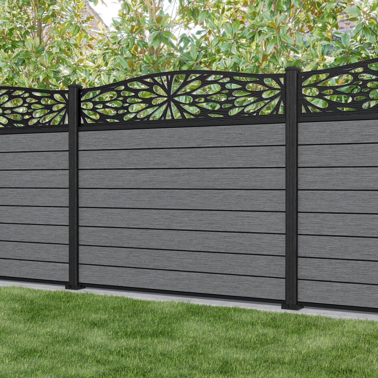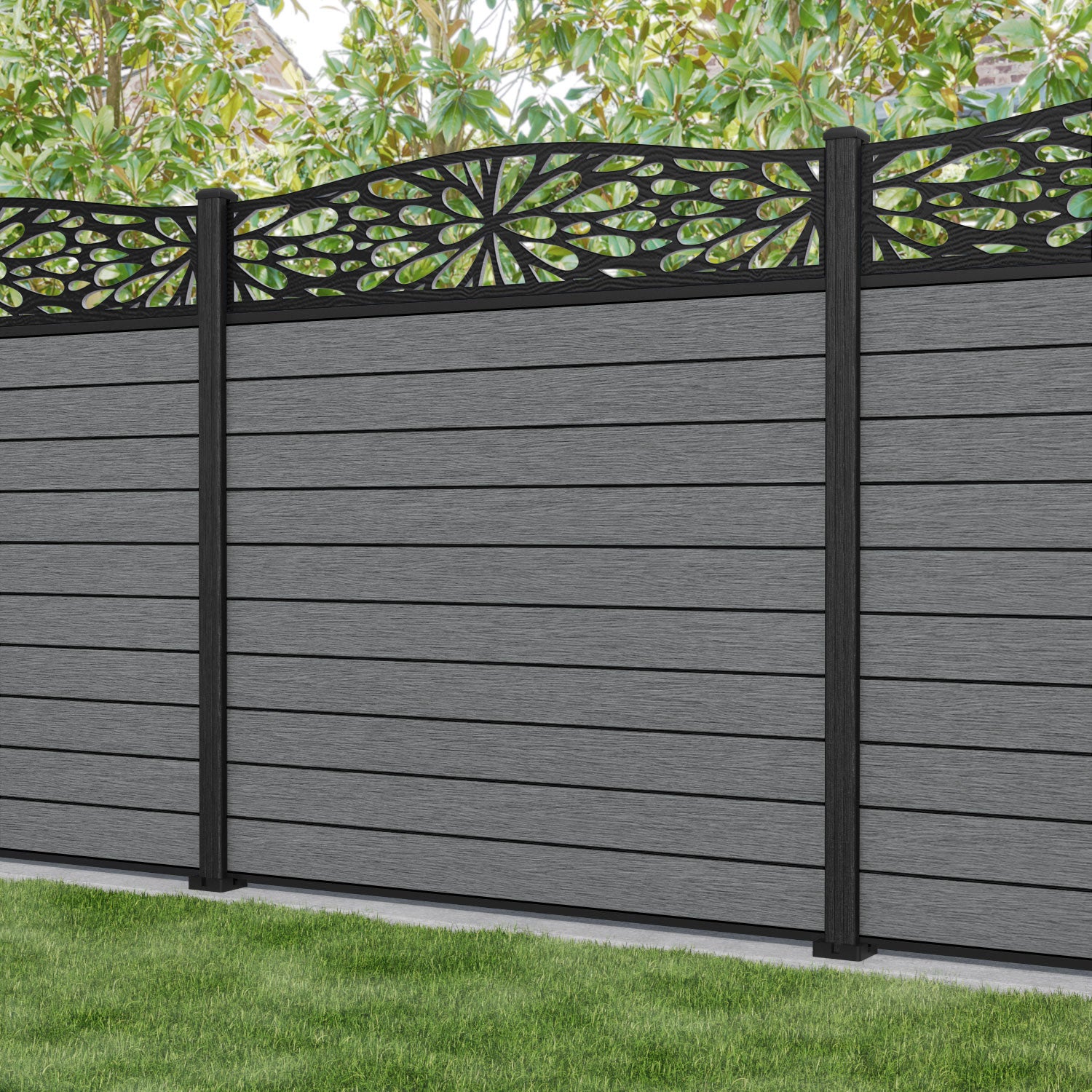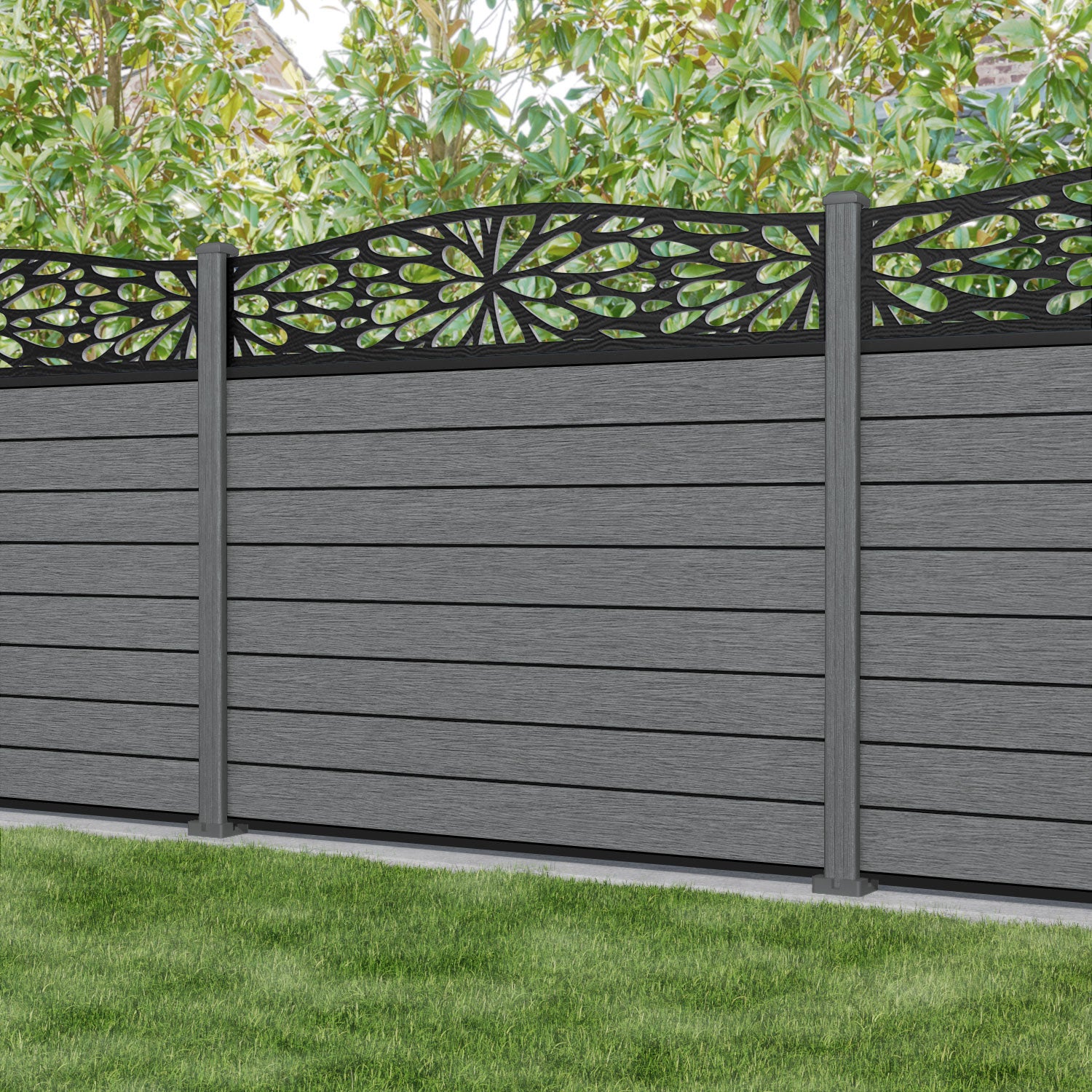 Fusion Blossom Curved Top Fence Panel Mid Grey - with our composite posts