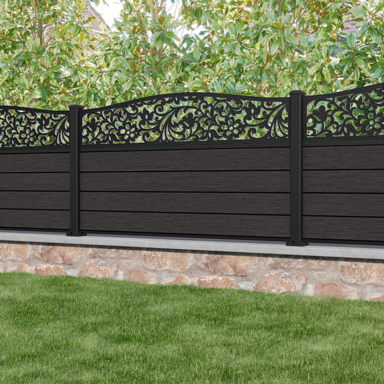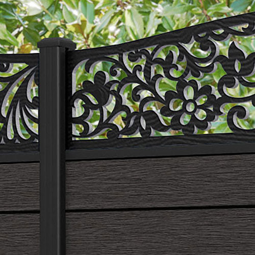 Fusion Eden Curved Top Fence Panel Dark Oak - with our aluminium posts