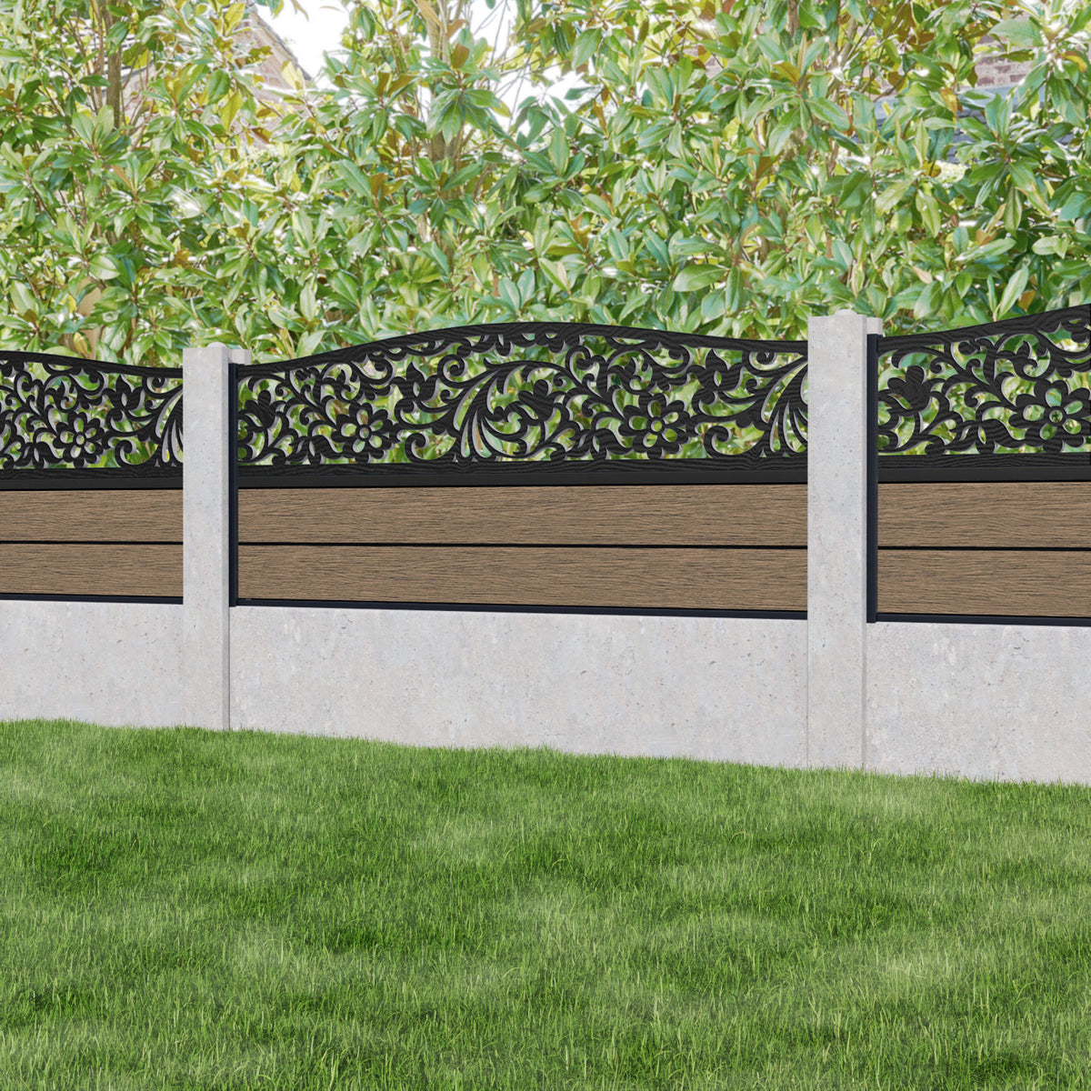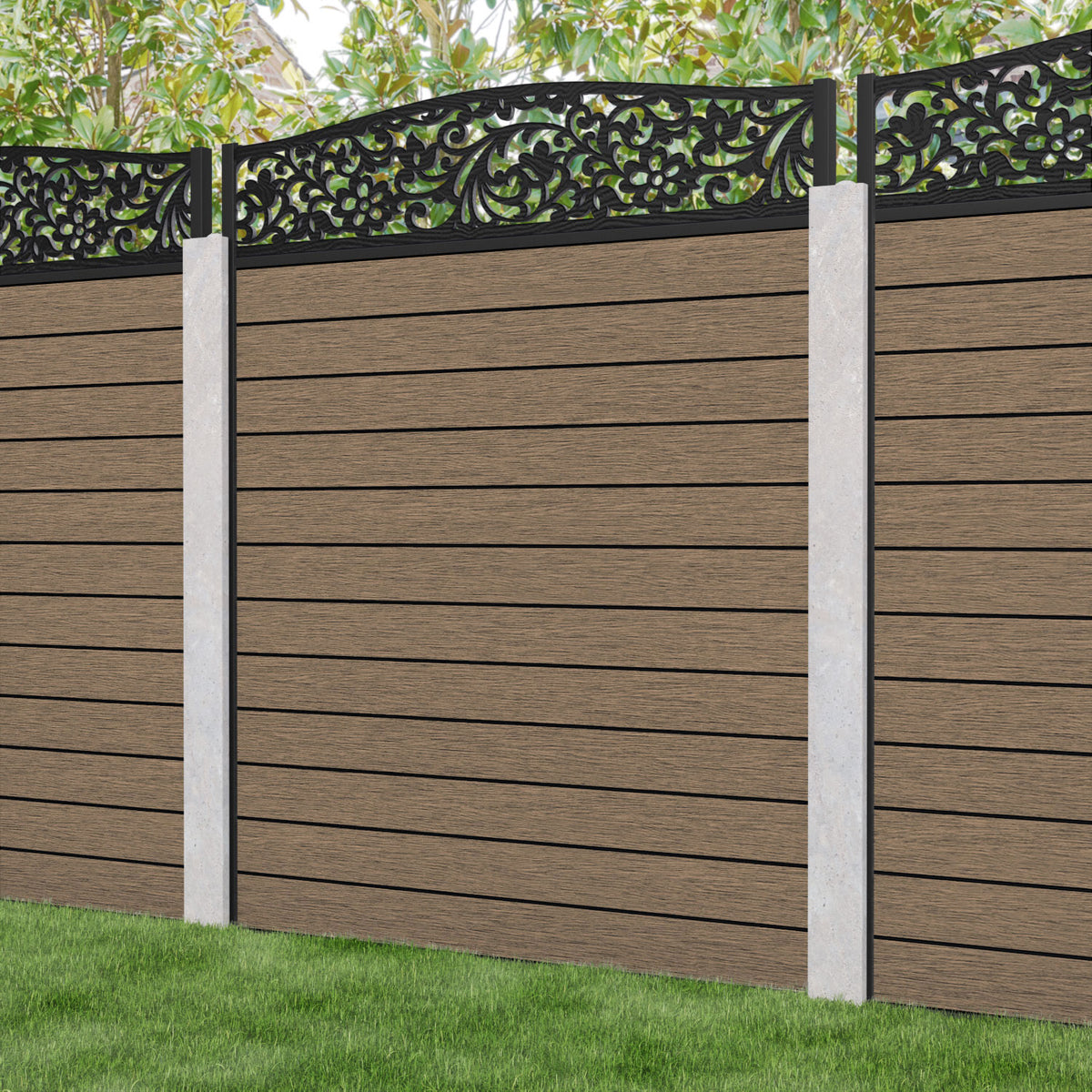 Fusion Eden Curved Top Fence Panel Teak - for existing concrete posts