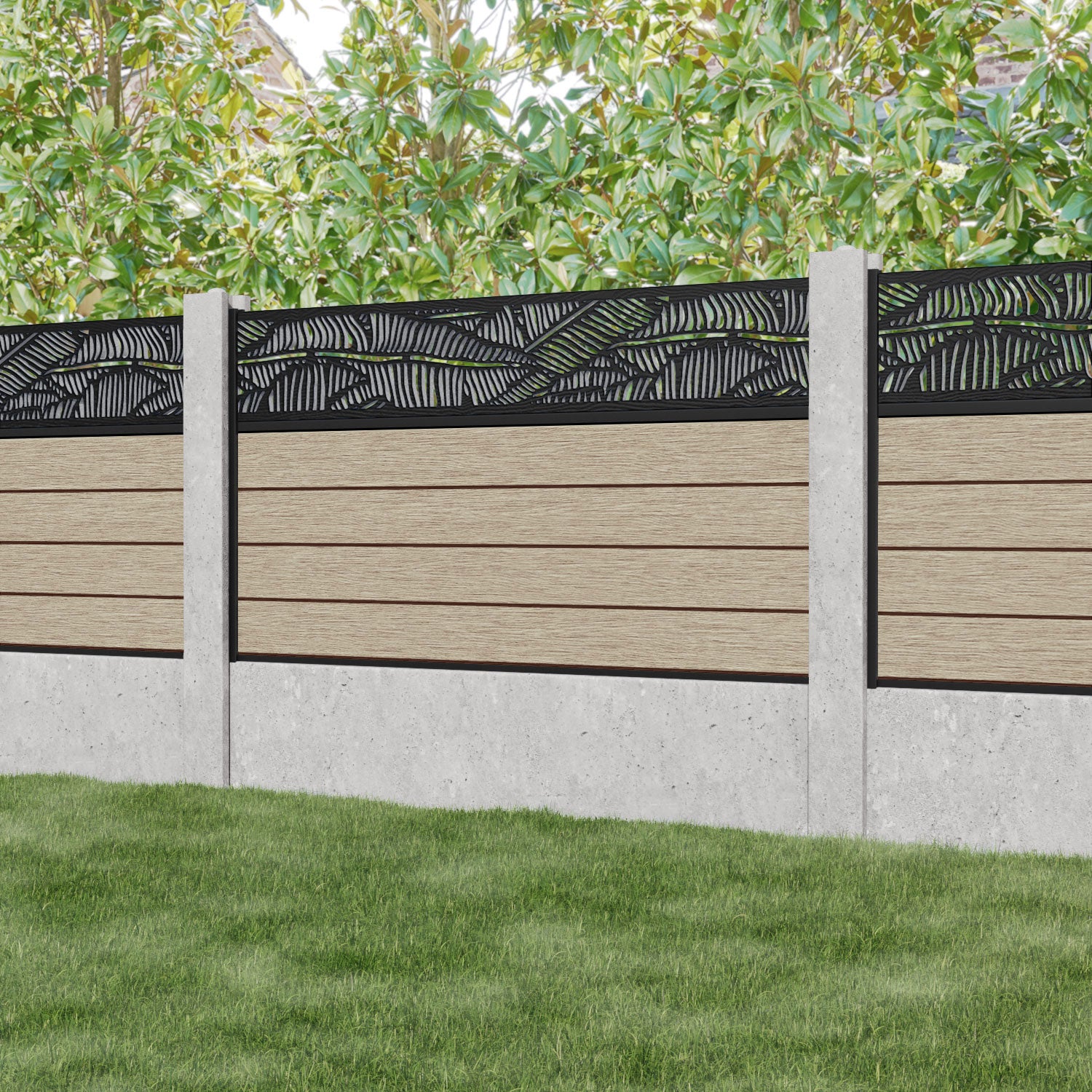 Fusion Feather Fence Panel Light Oak - for existing concrete posts