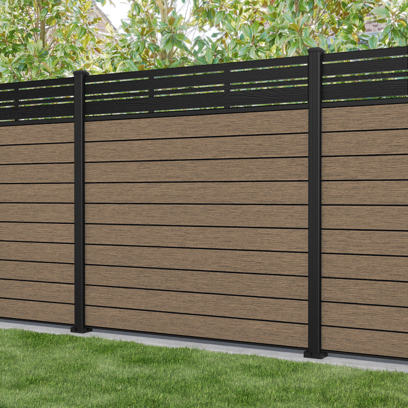 Fusion Linea Fence Panel Teak - with our aluminium posts