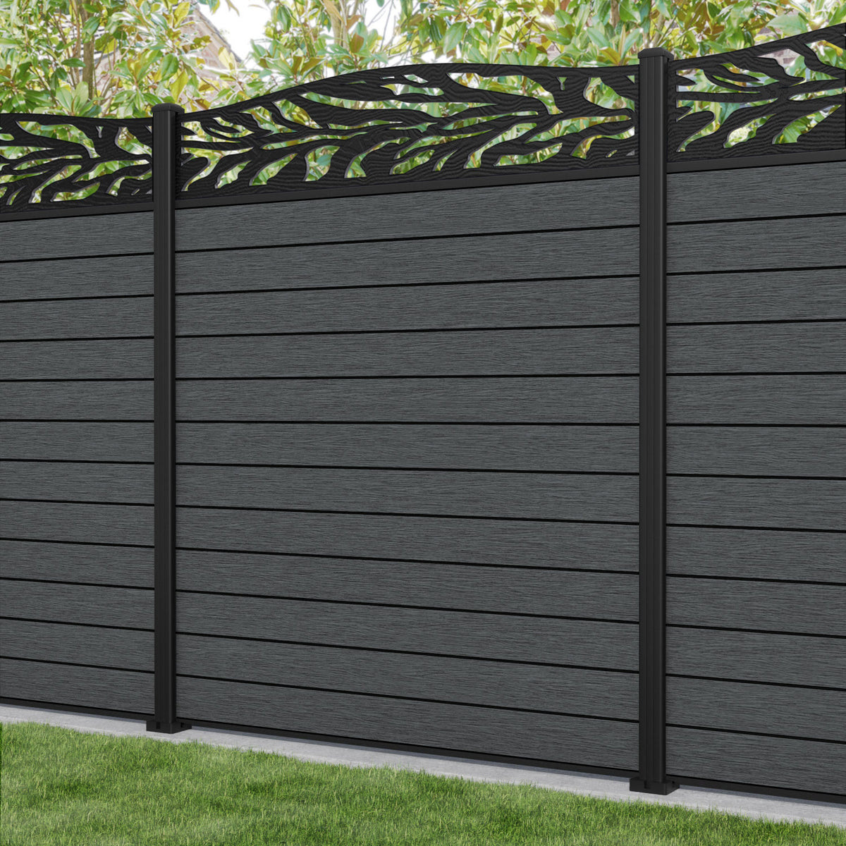 Fusion Malawi Curved Top Fence Panel Dark Grey - with our aluminium posts