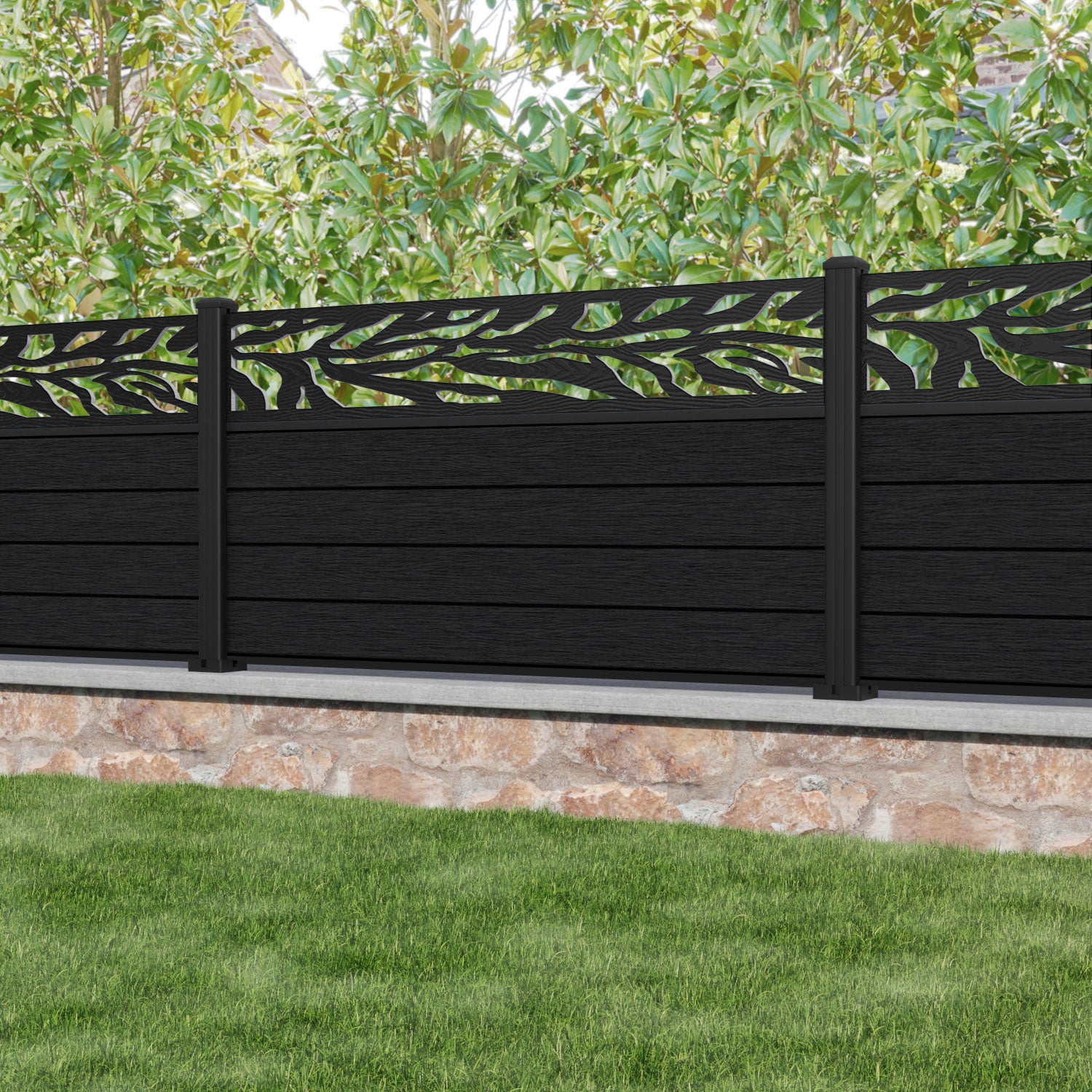 Fusion Malawi Fence Panel Black - with our aluminium posts