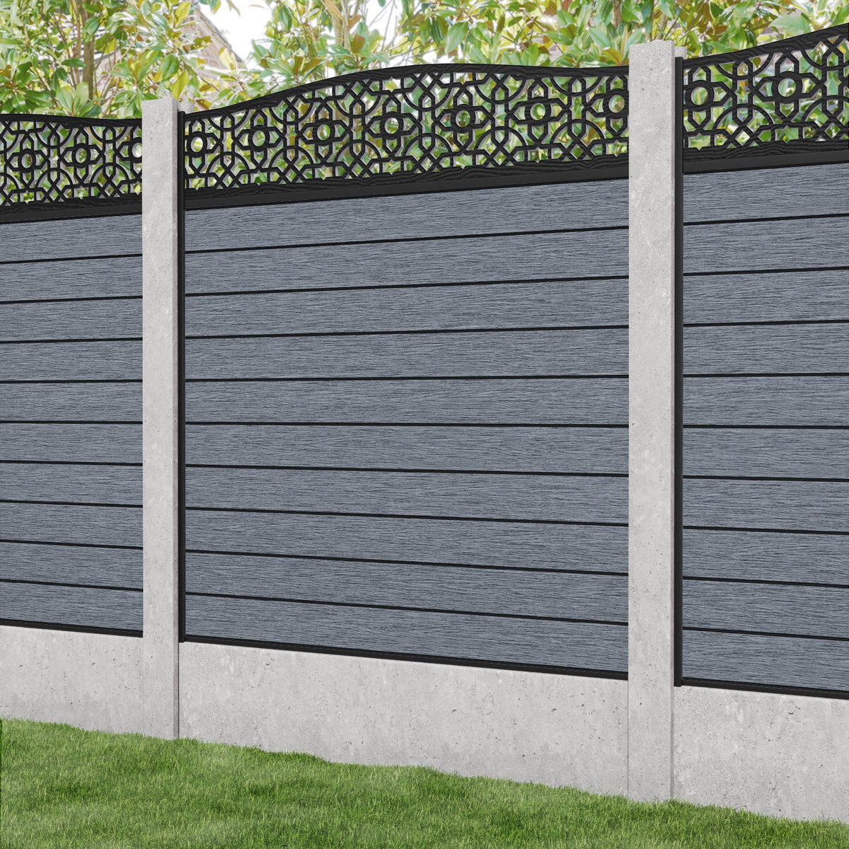 Fusion Nabila Curved Top Fence Panel Anthracite - for existing concrete posts