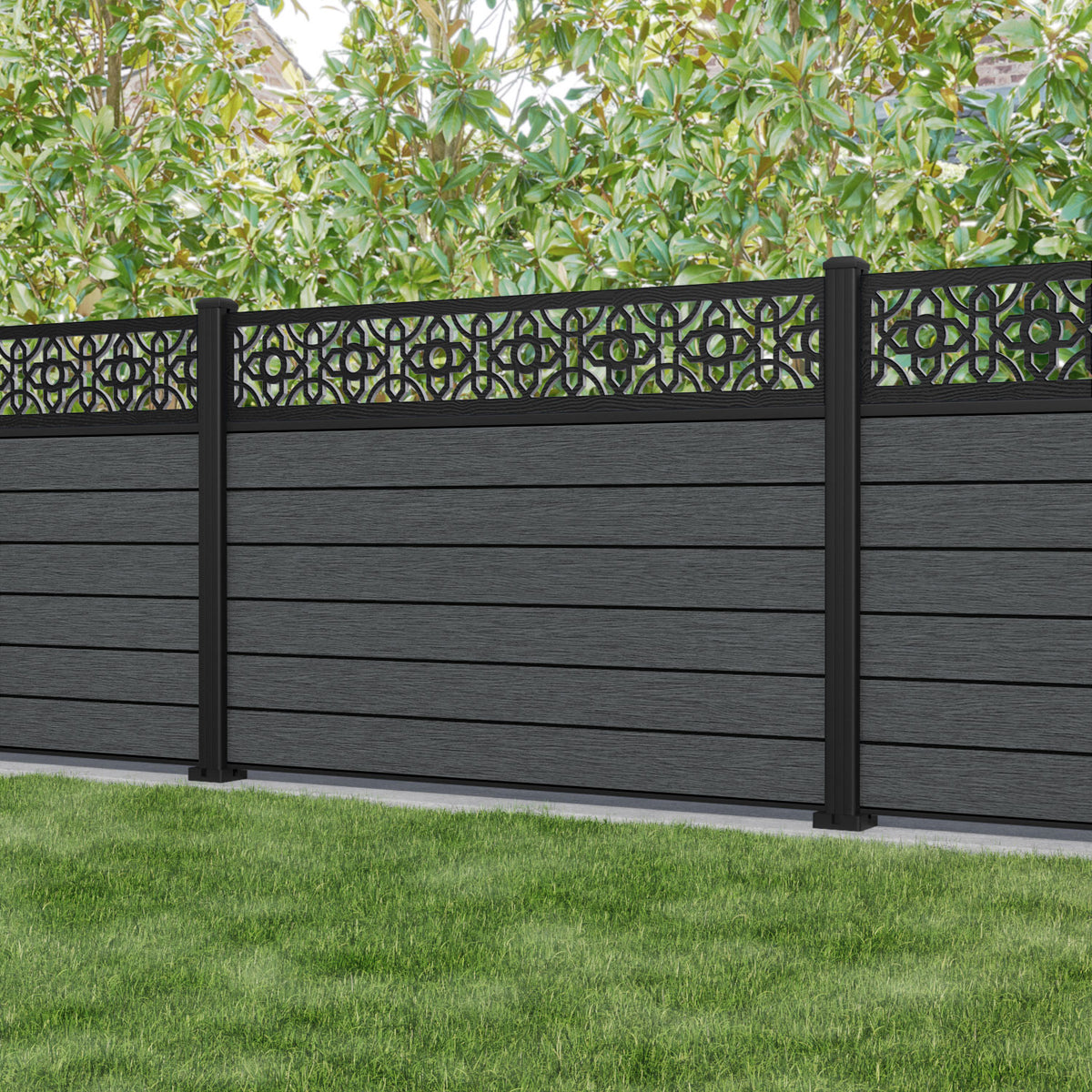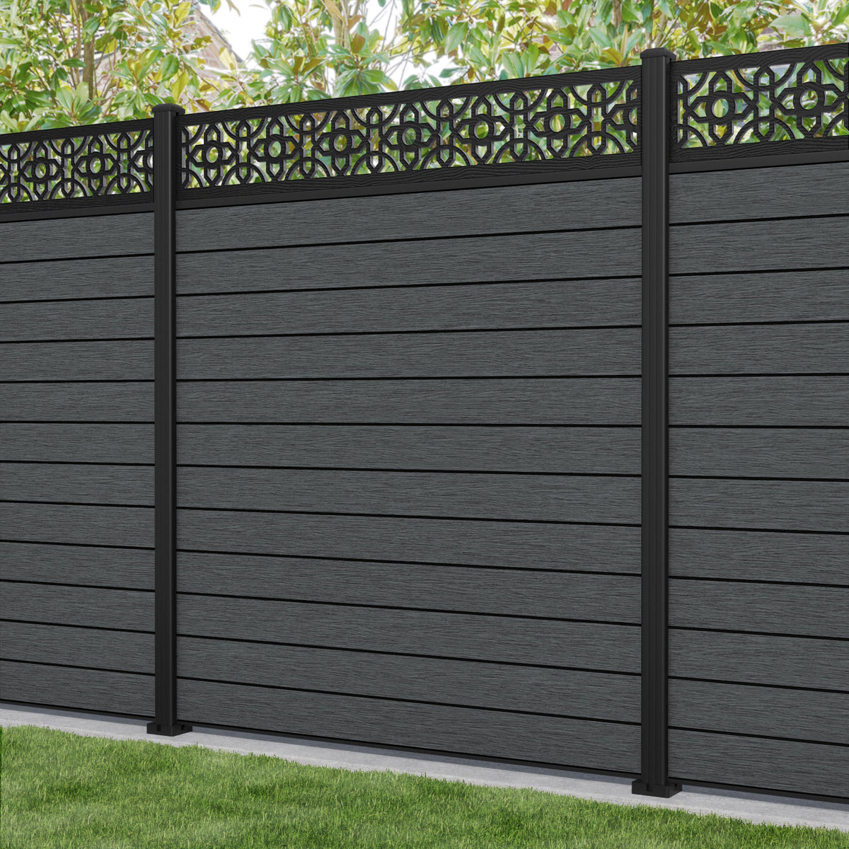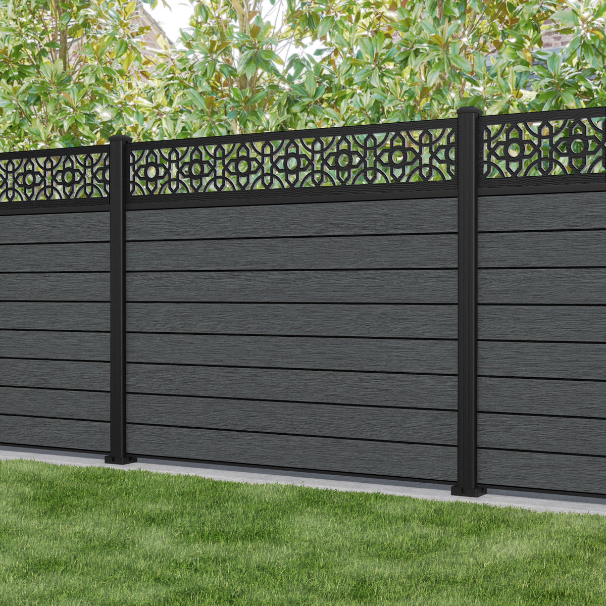 Fusion Nabila Fence Panel Dark Grey - with our aluminium posts