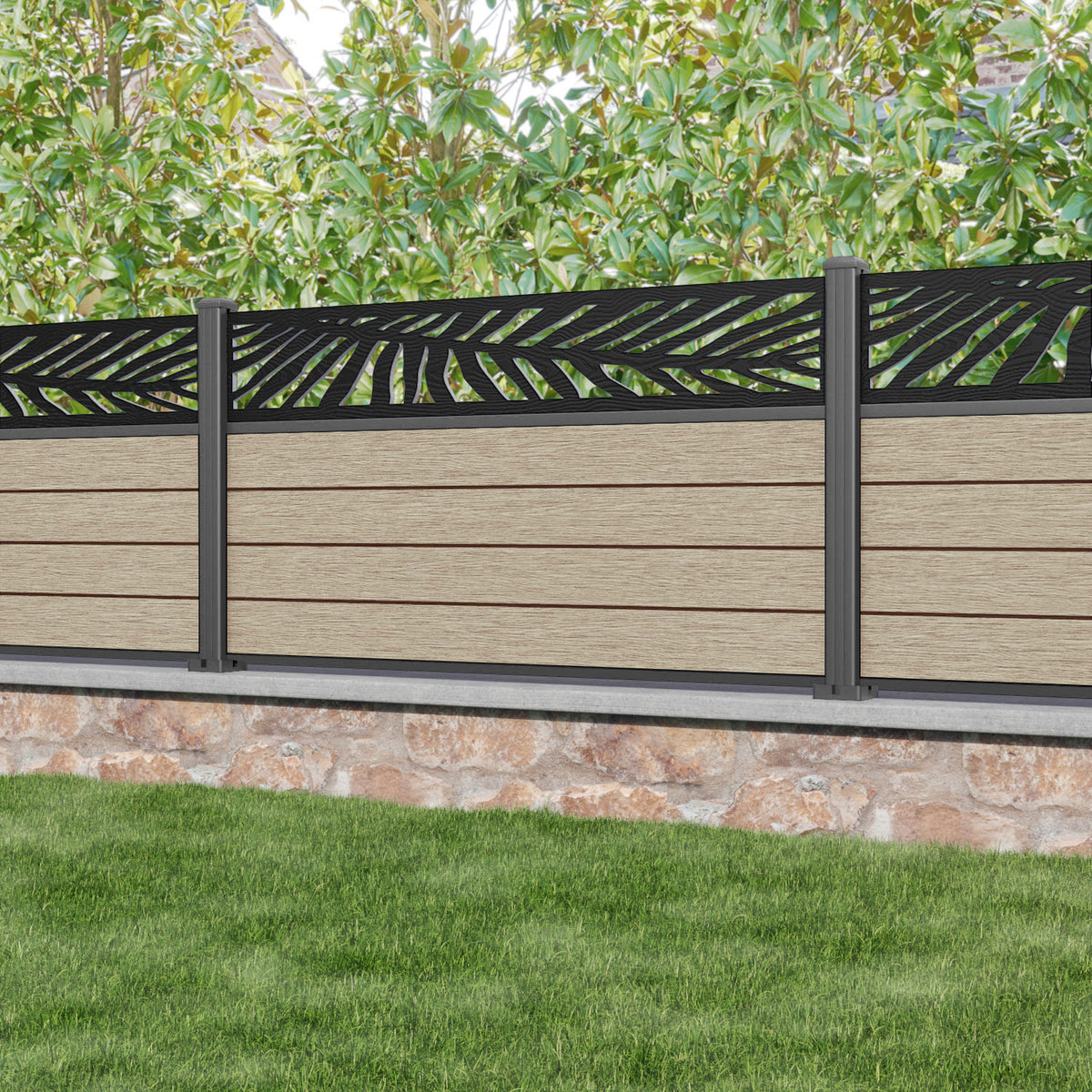 Fusion Palm Fence Panel Light Oak - with our aluminium posts
