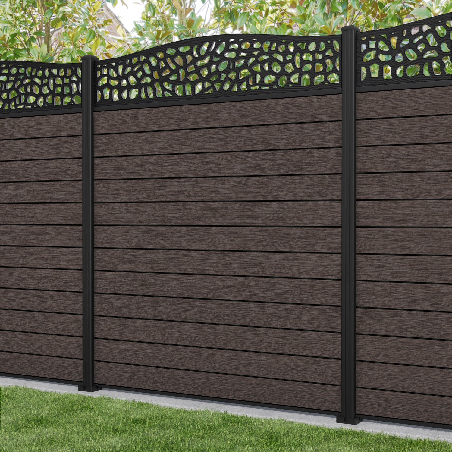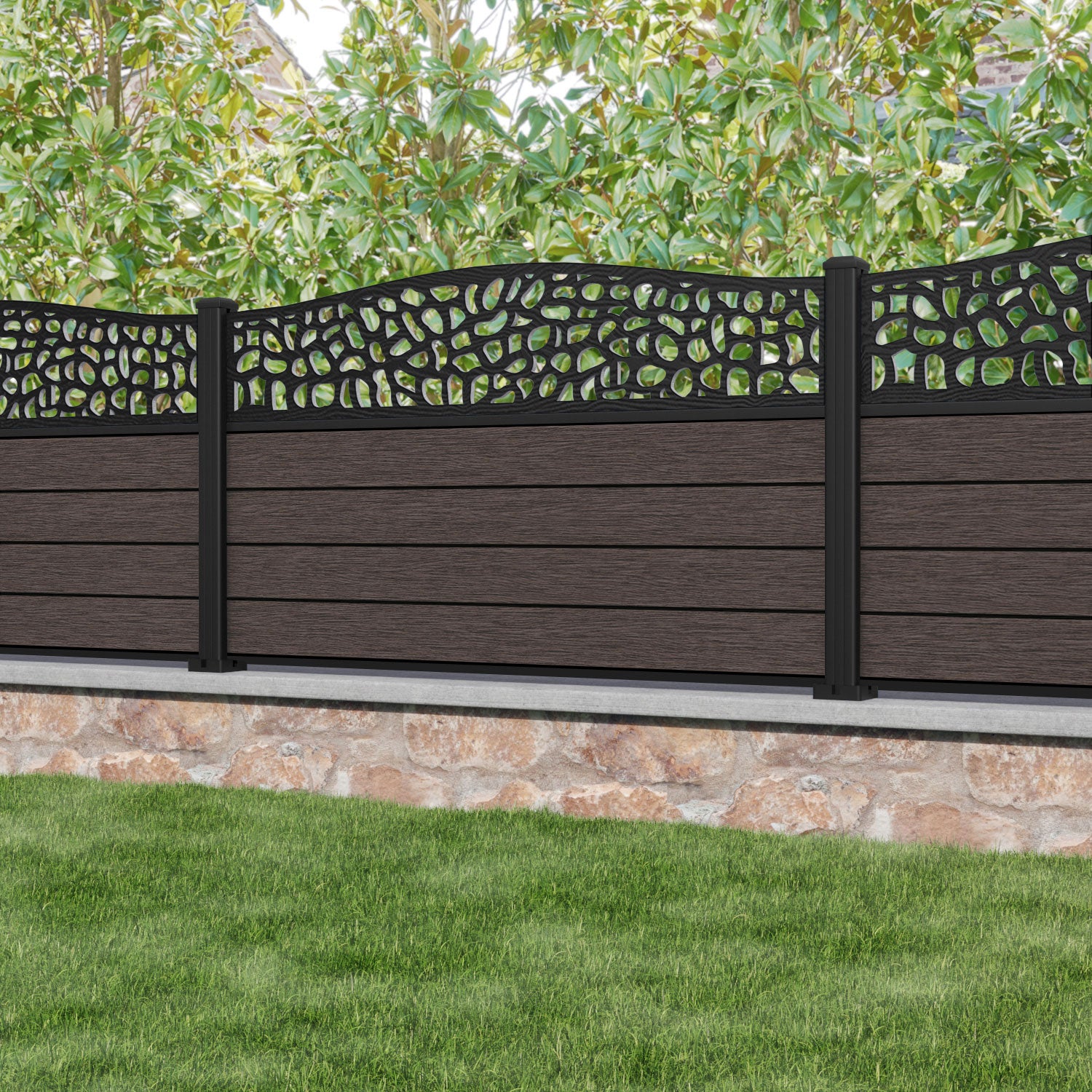 Fusion Pebble Curved Top Fence Panel Mid Brown - with our aluminium posts