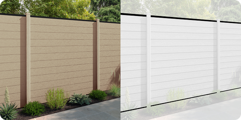 Fusion Pebble Fence Panel Light Oak - with our aluminium posts
