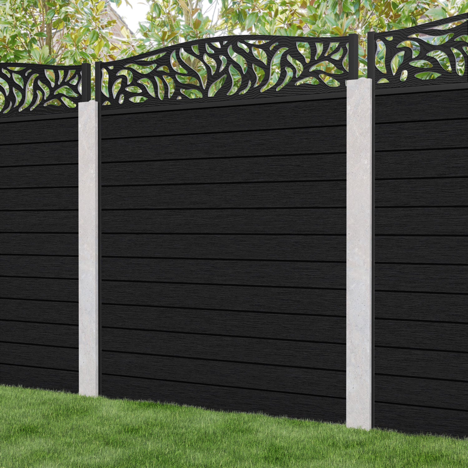 Fusion Plume Curved Top Fence Panel Black - for existing concrete posts