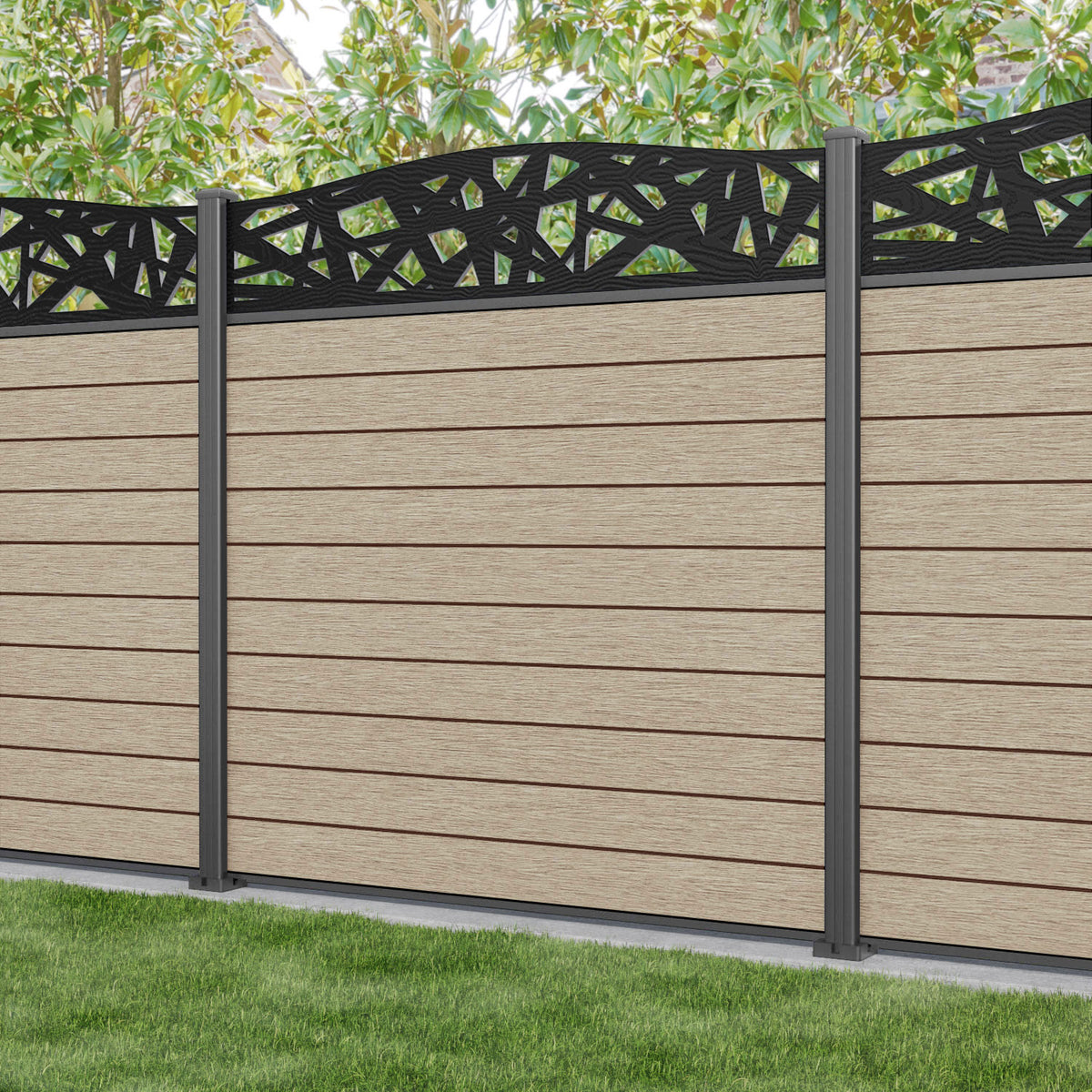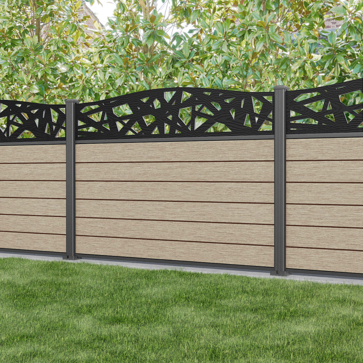 Fusion Prism Curved Top Fence Panel Light Oak - with our aluminium posts