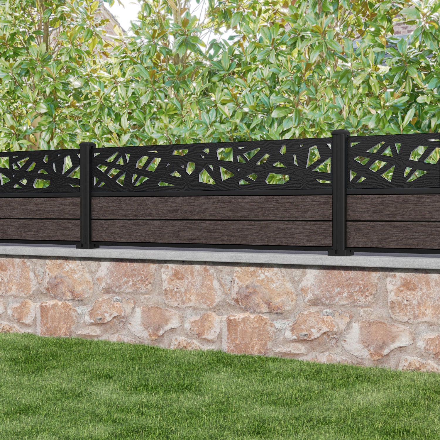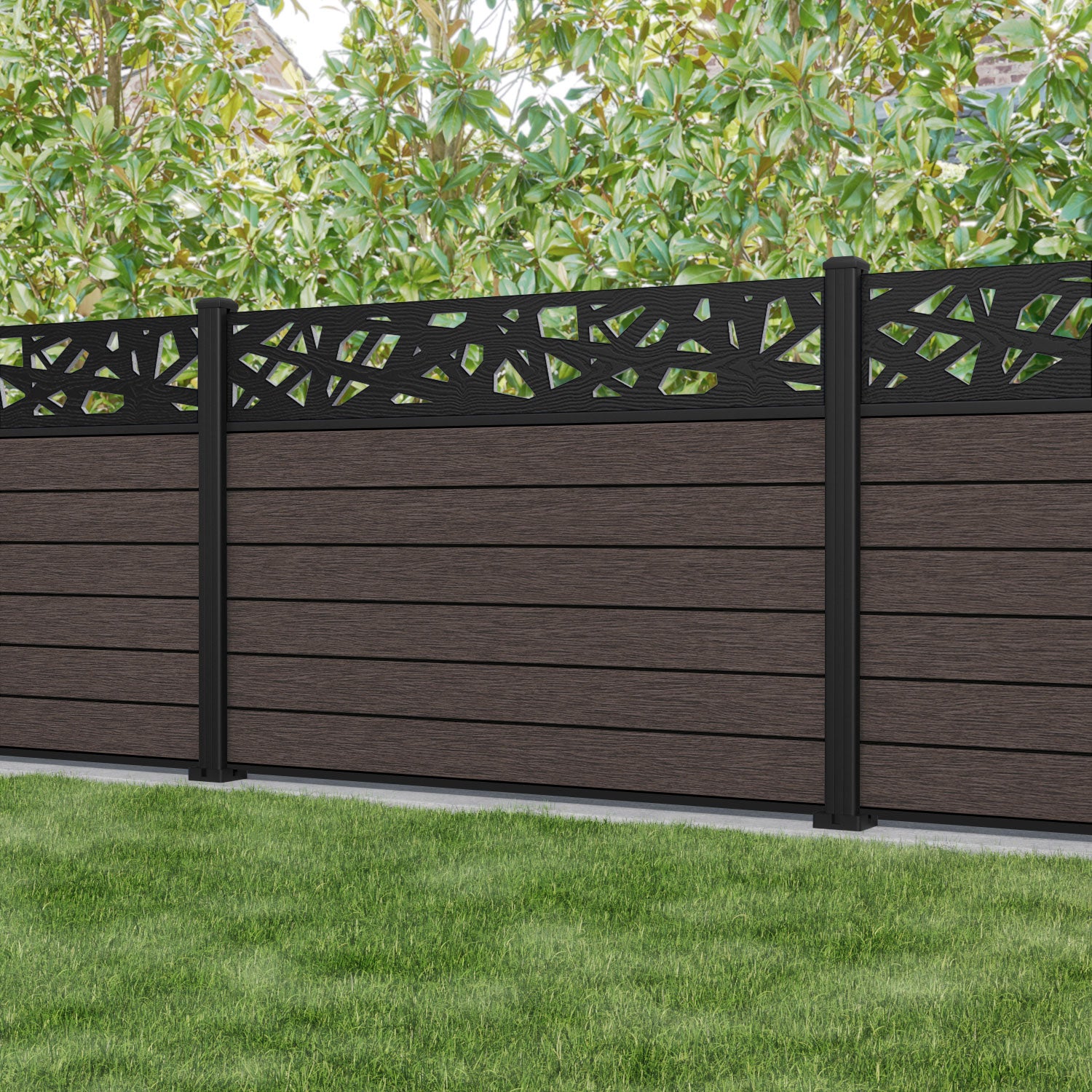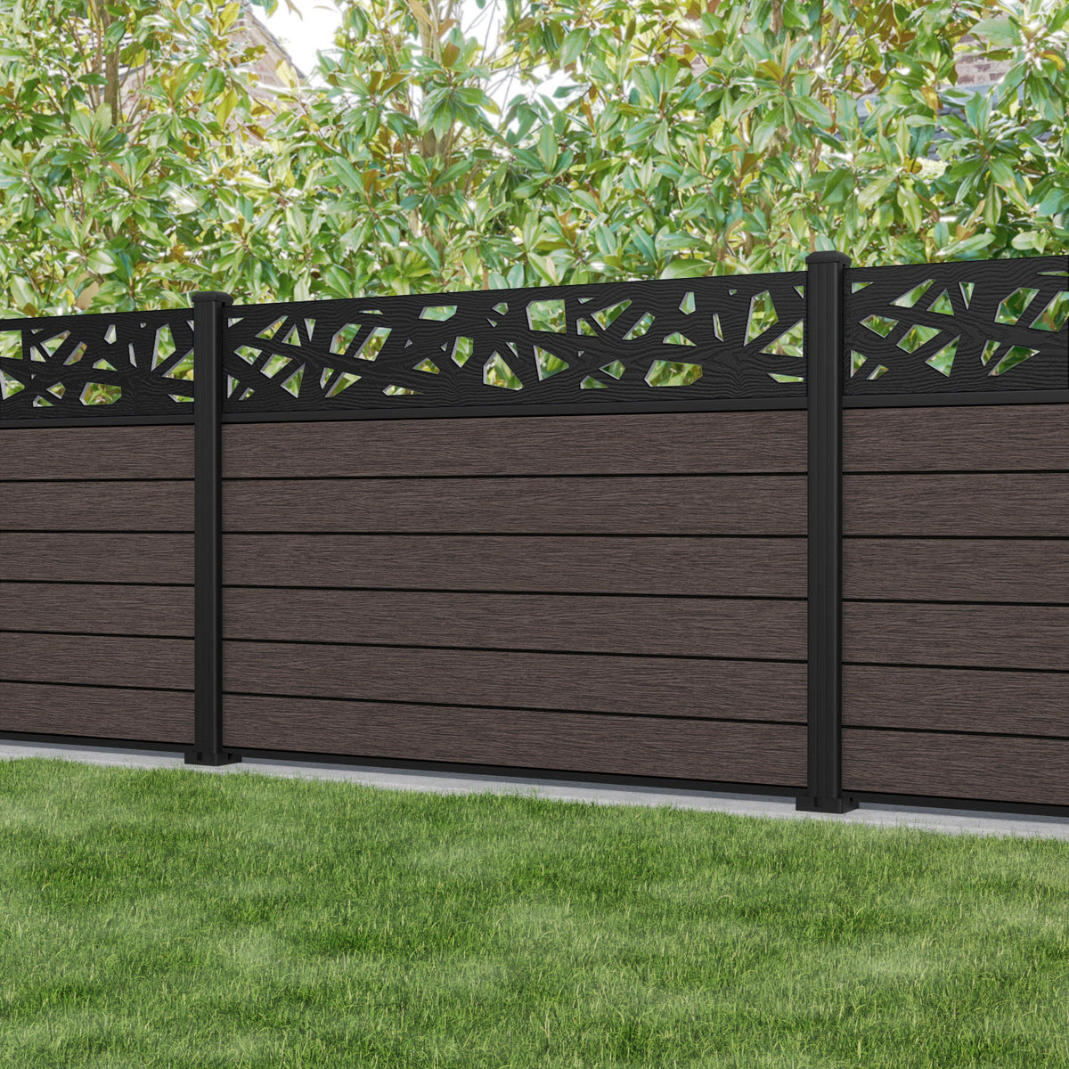 Fusion Prism Fence Panel Mid Brown - with our aluminium posts
