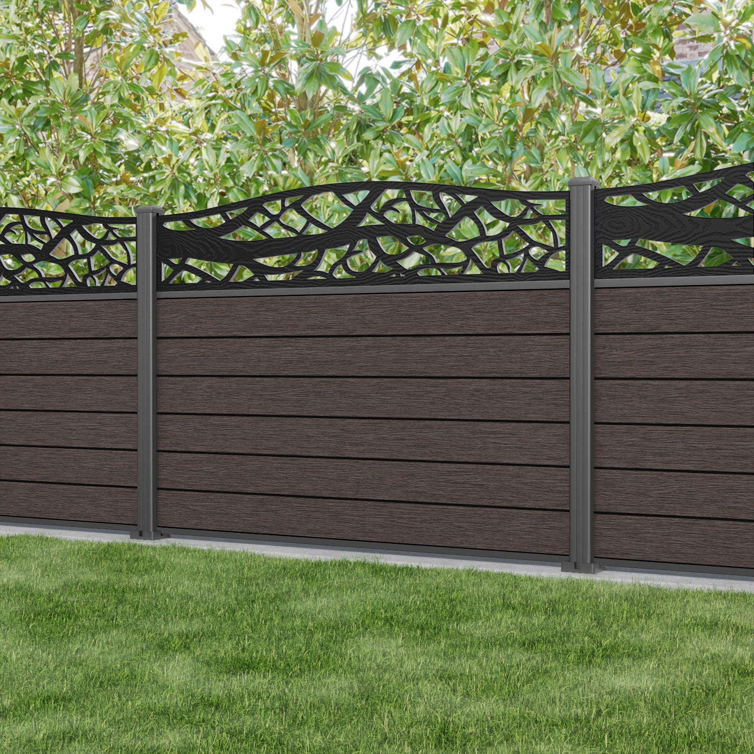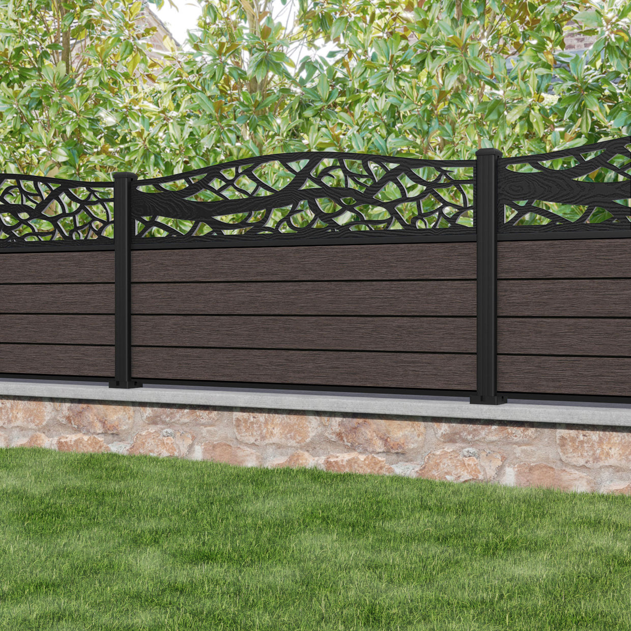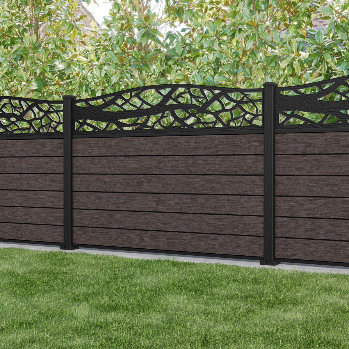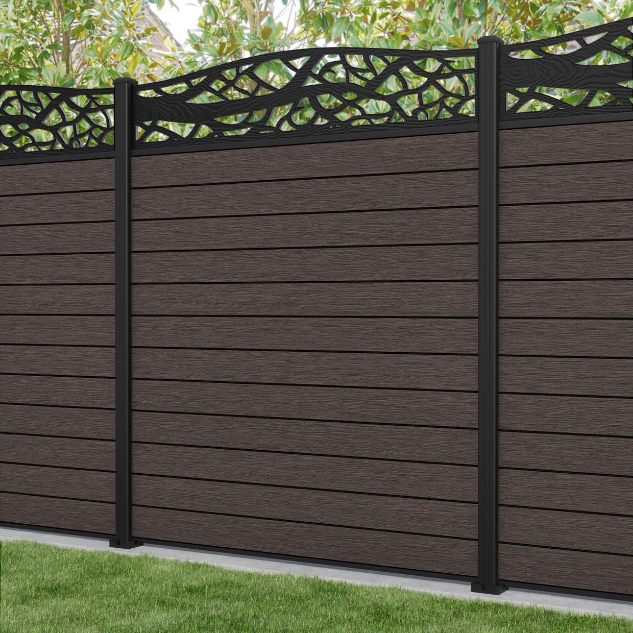 Fusion Twilight Curved Top Fence Panel Mid Brown - with our aluminium posts