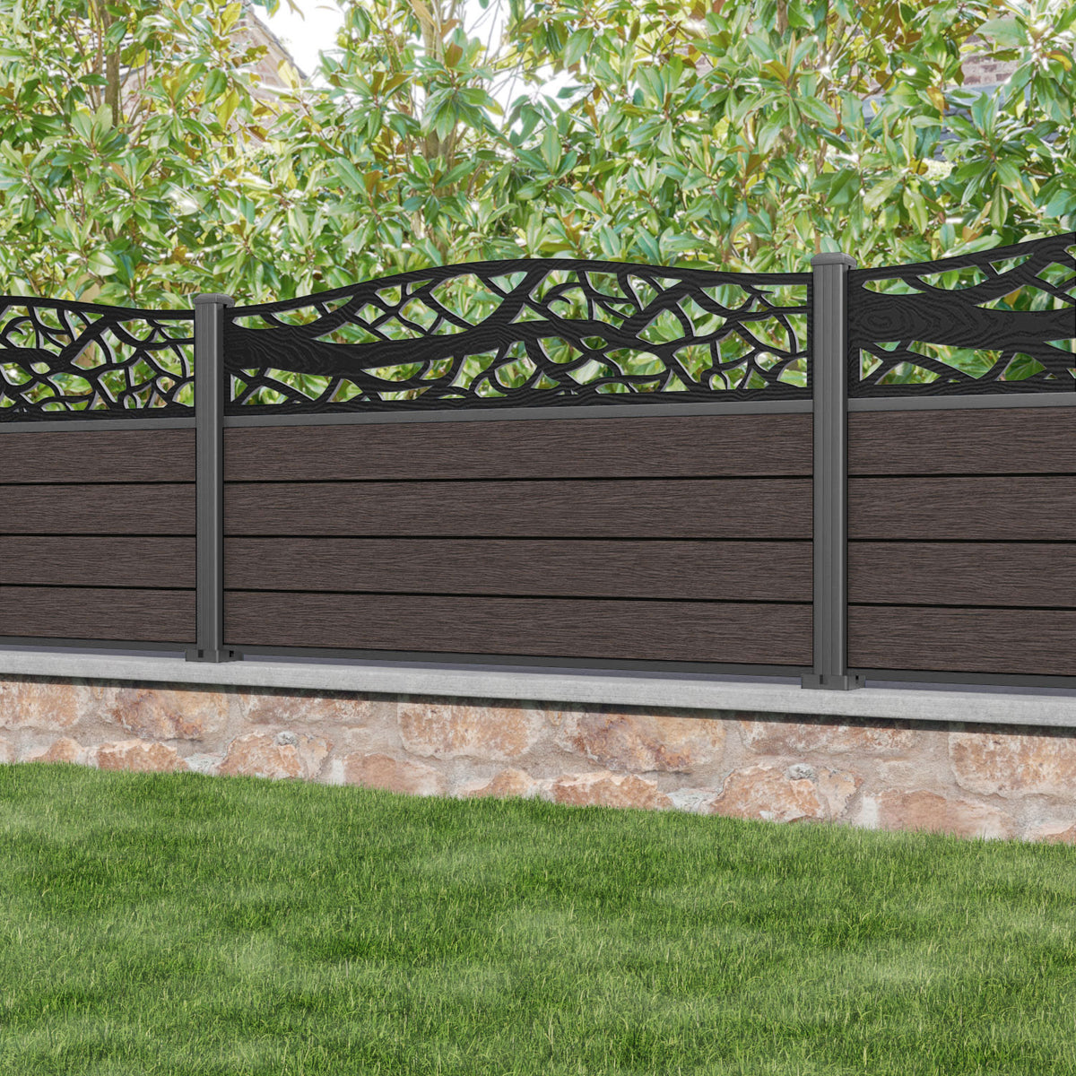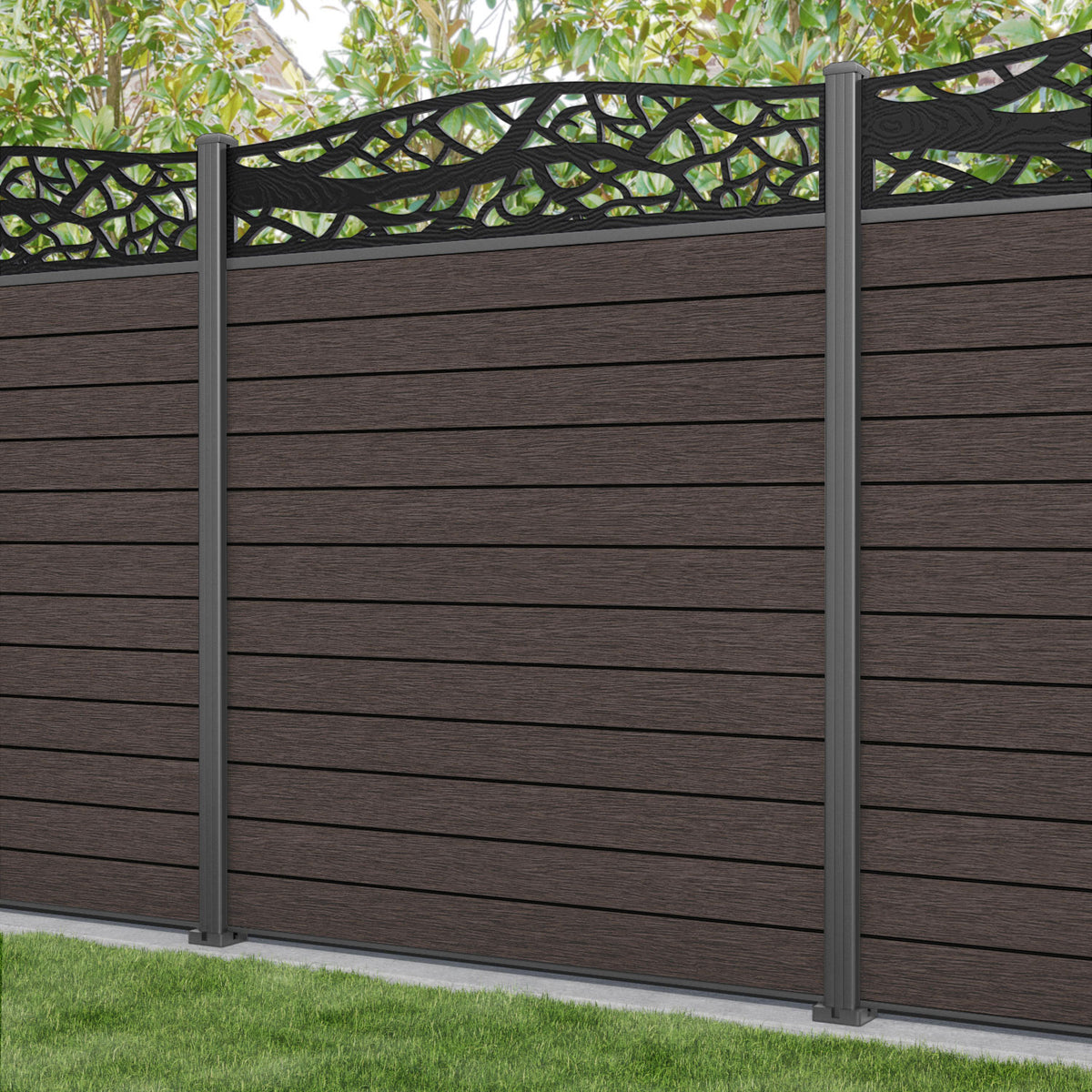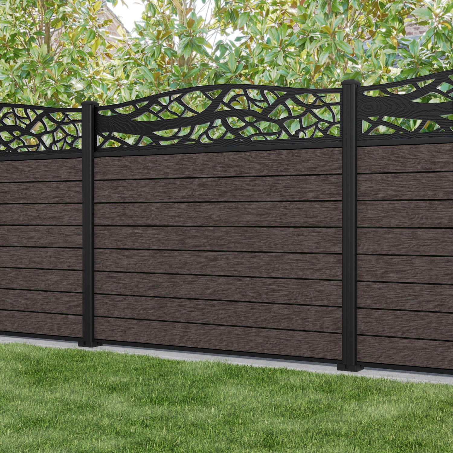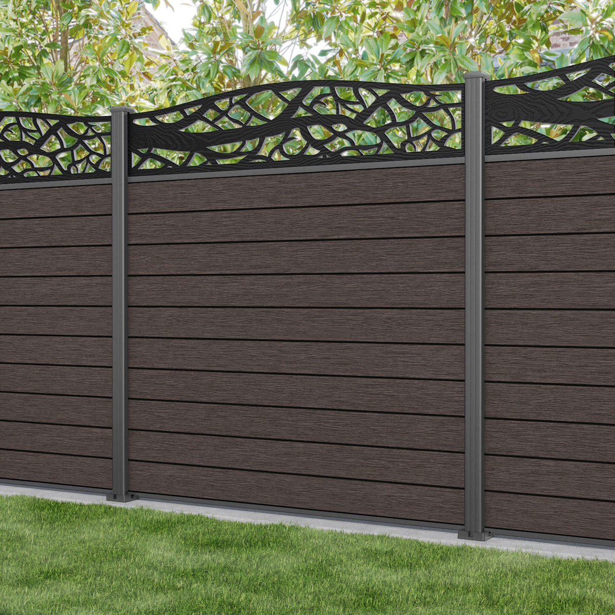Fusion Twilight Curved Top Fence Panel Mid Brown - with our aluminium posts