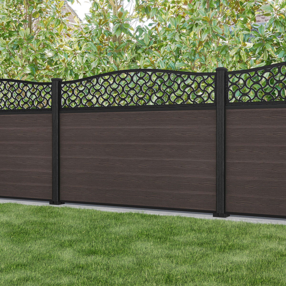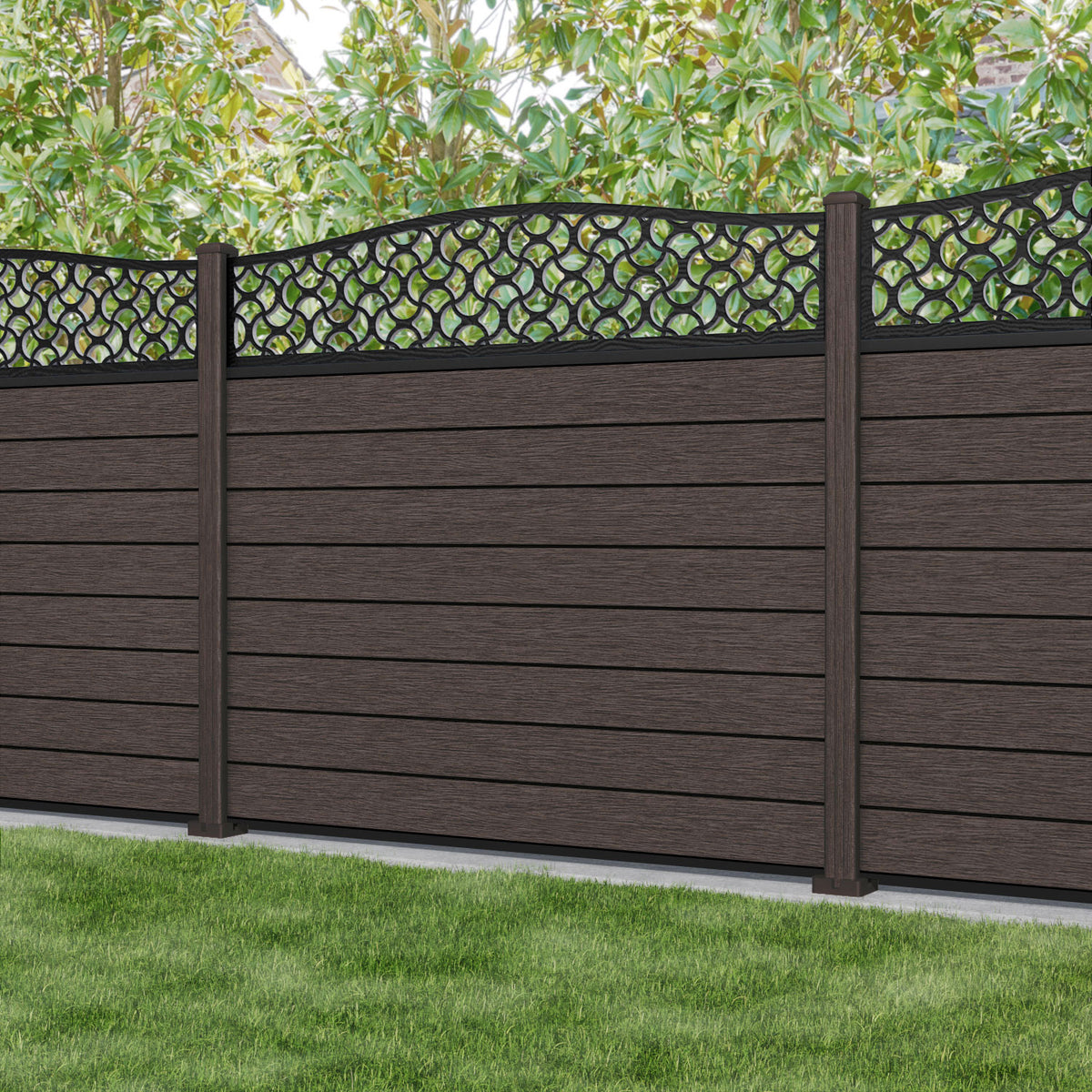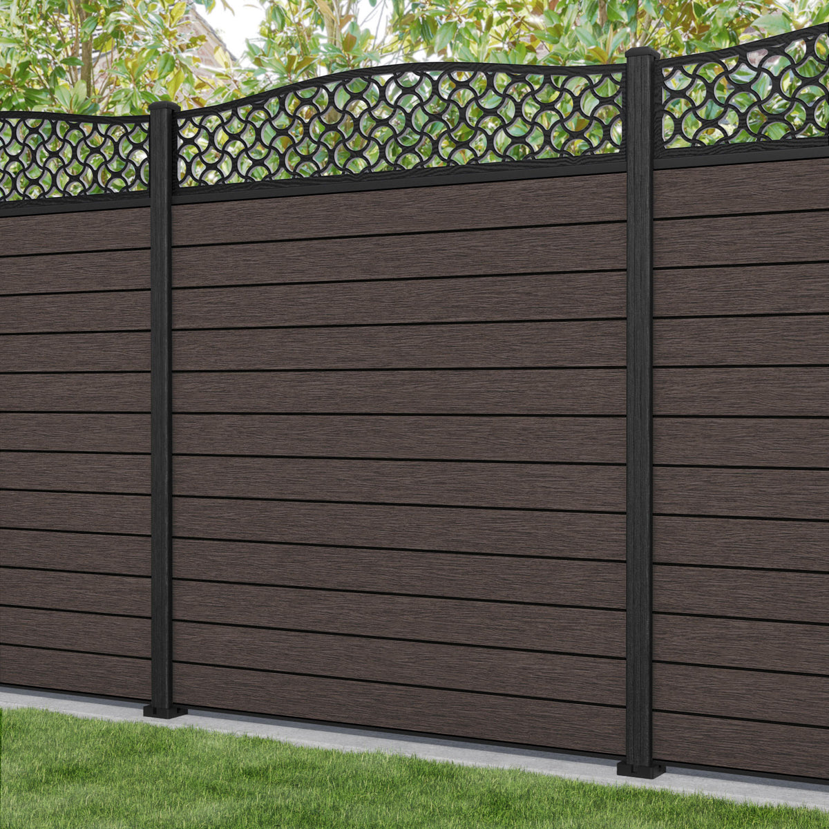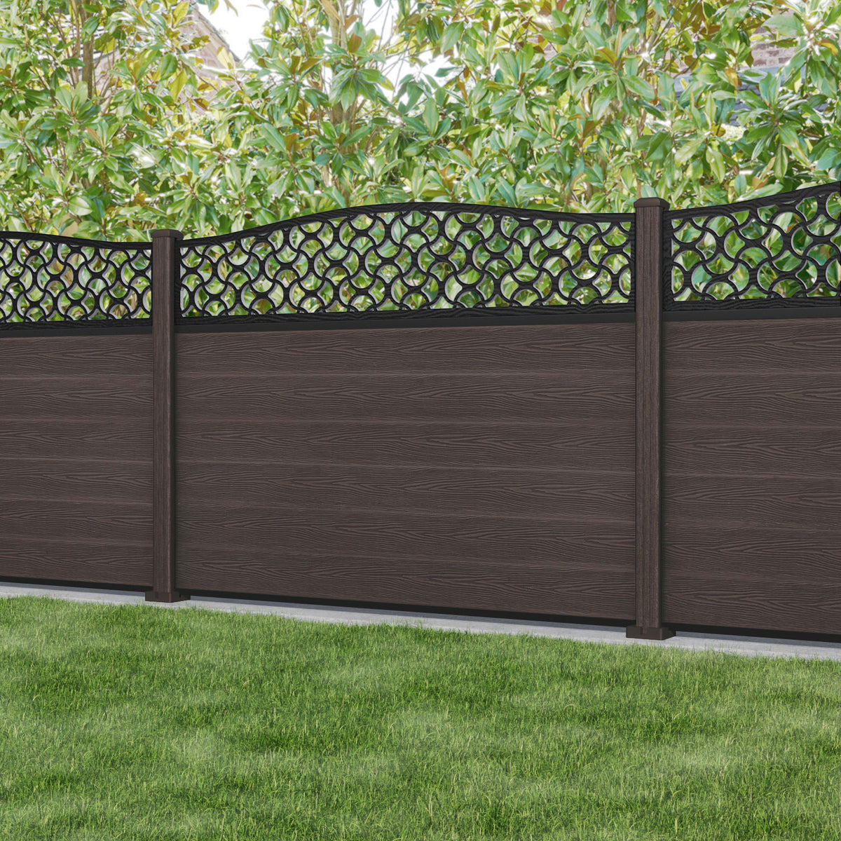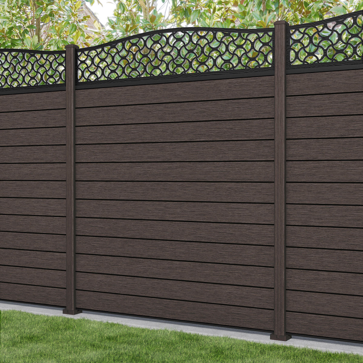 Fusion Vida Curved Top Fence Panel Mid Brown - with our composite posts