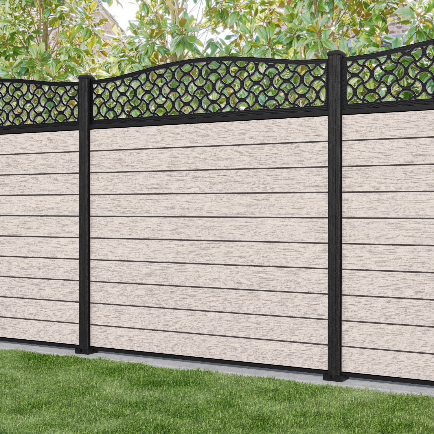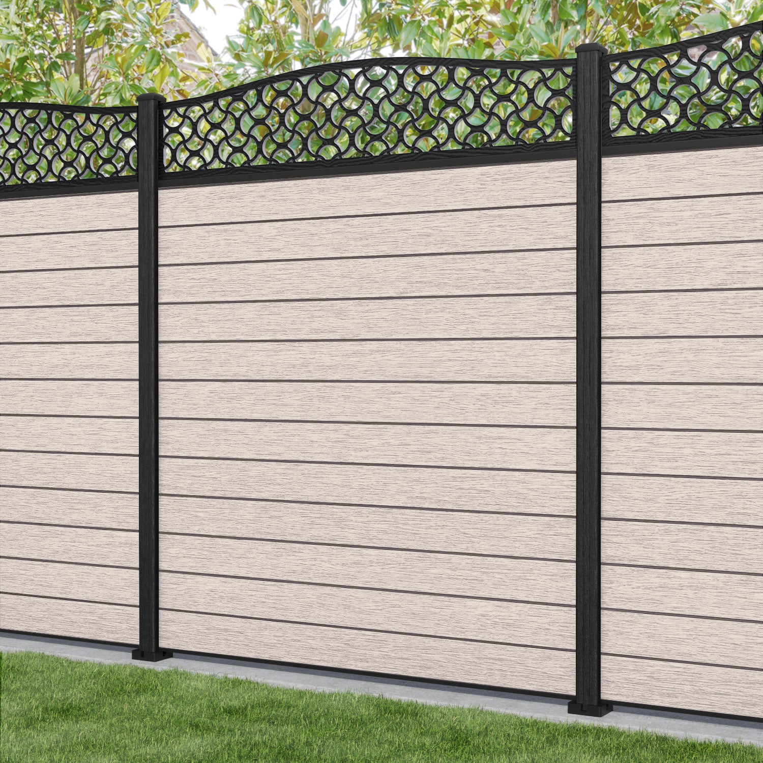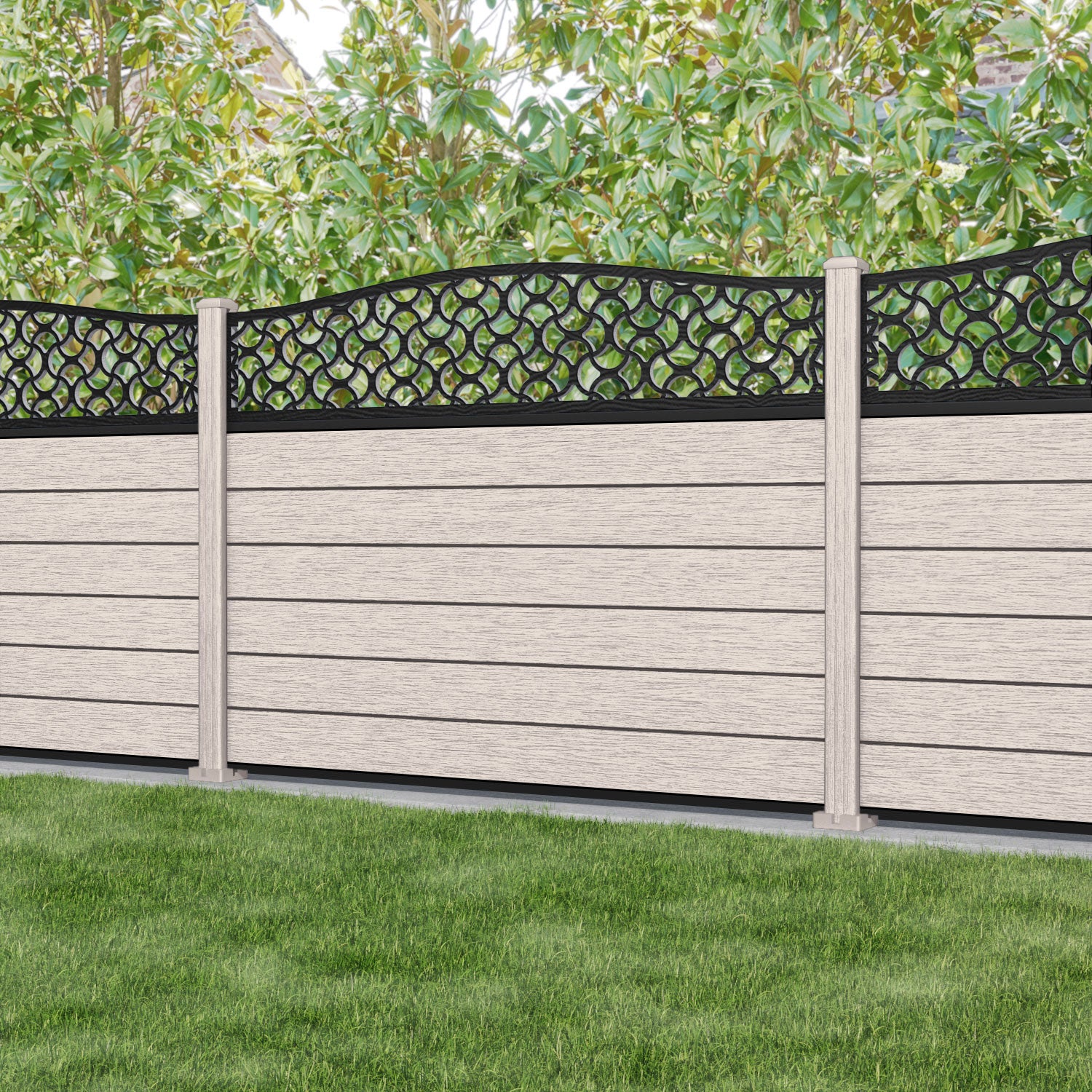 Fusion Vida Curved Top Fence Panel Mid Stone - with our composite posts