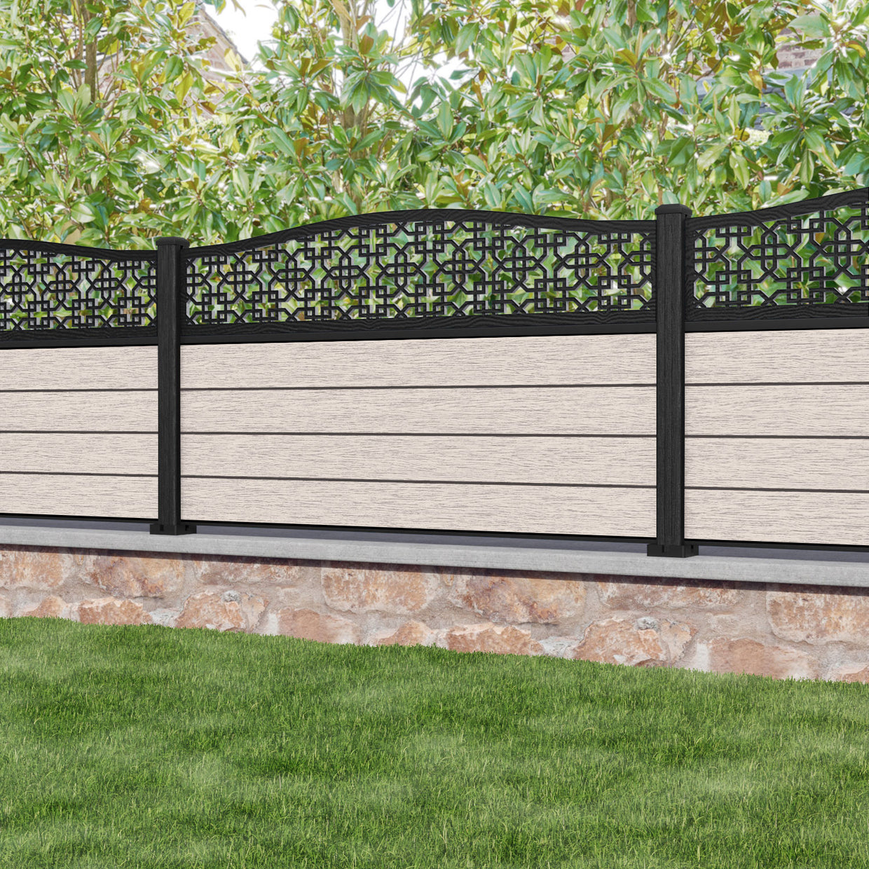 Fusion Zaria Curved Top Fence Panel Mid Stone - with our composite posts