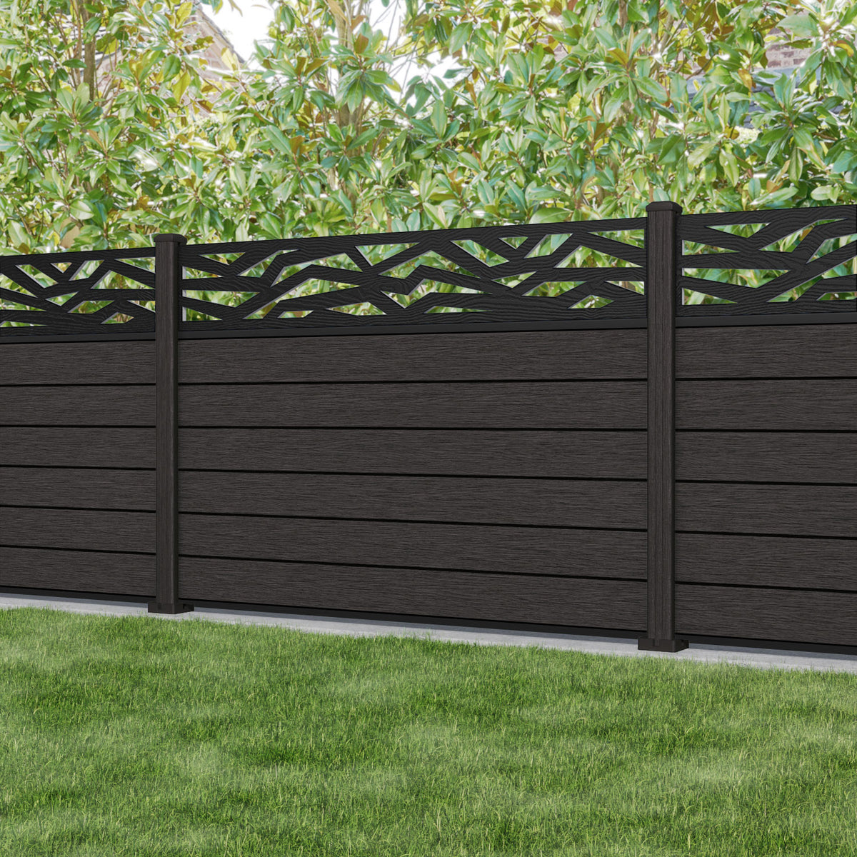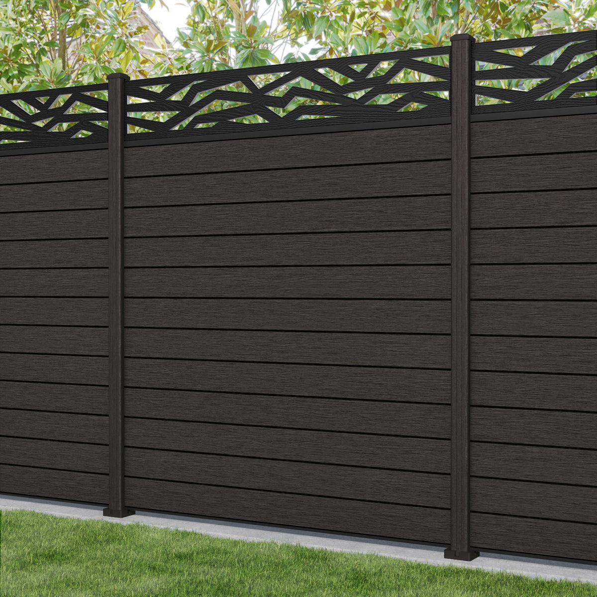 Fusion Zenith Fence Panel Dark Oak - with our composite posts