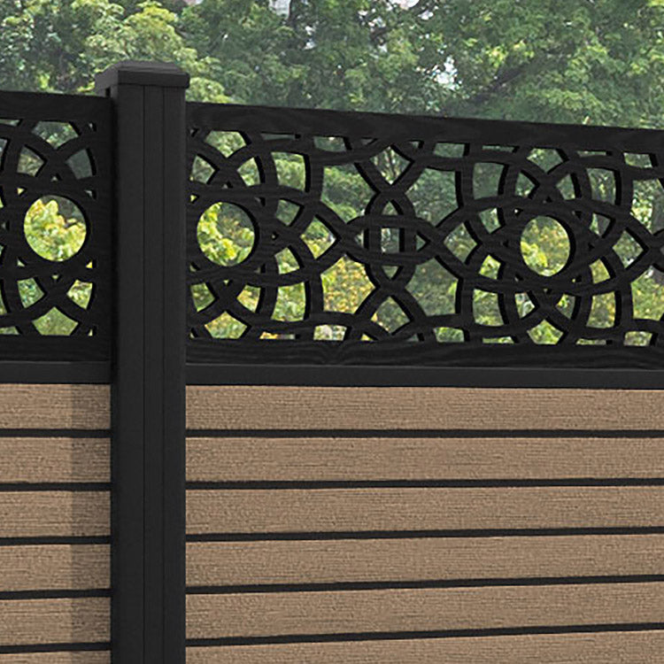 Hudson Ambar Fence Panel Teak - with our aluminium posts
