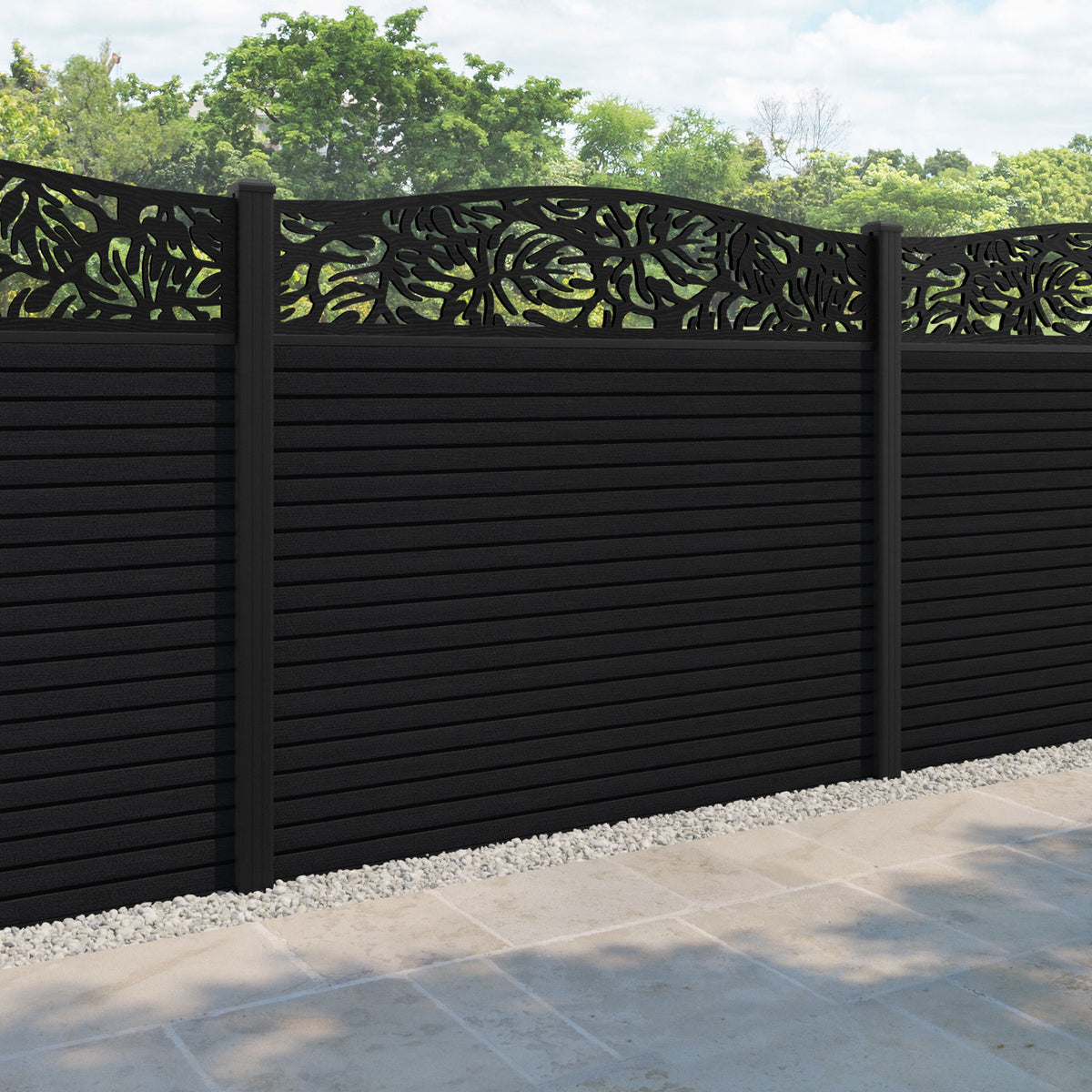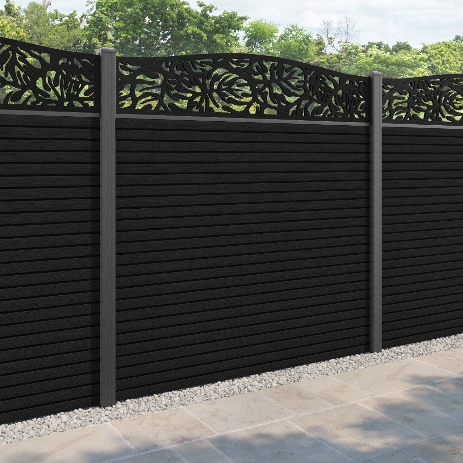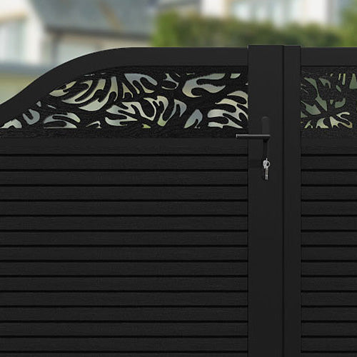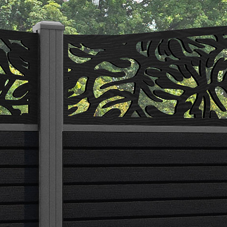 Hudson Botanic Curved Top Fence Panel Black - with our aluminium posts