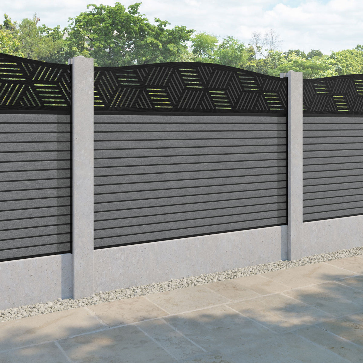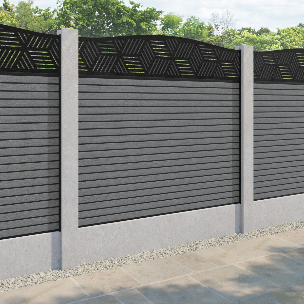 Hudson Cubed Curved Top Fence Panel Mid Grey - for existing concrete posts