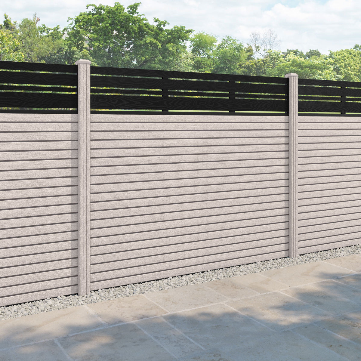 Hudson Linea Fence Panel Mid Stone - with our composite posts