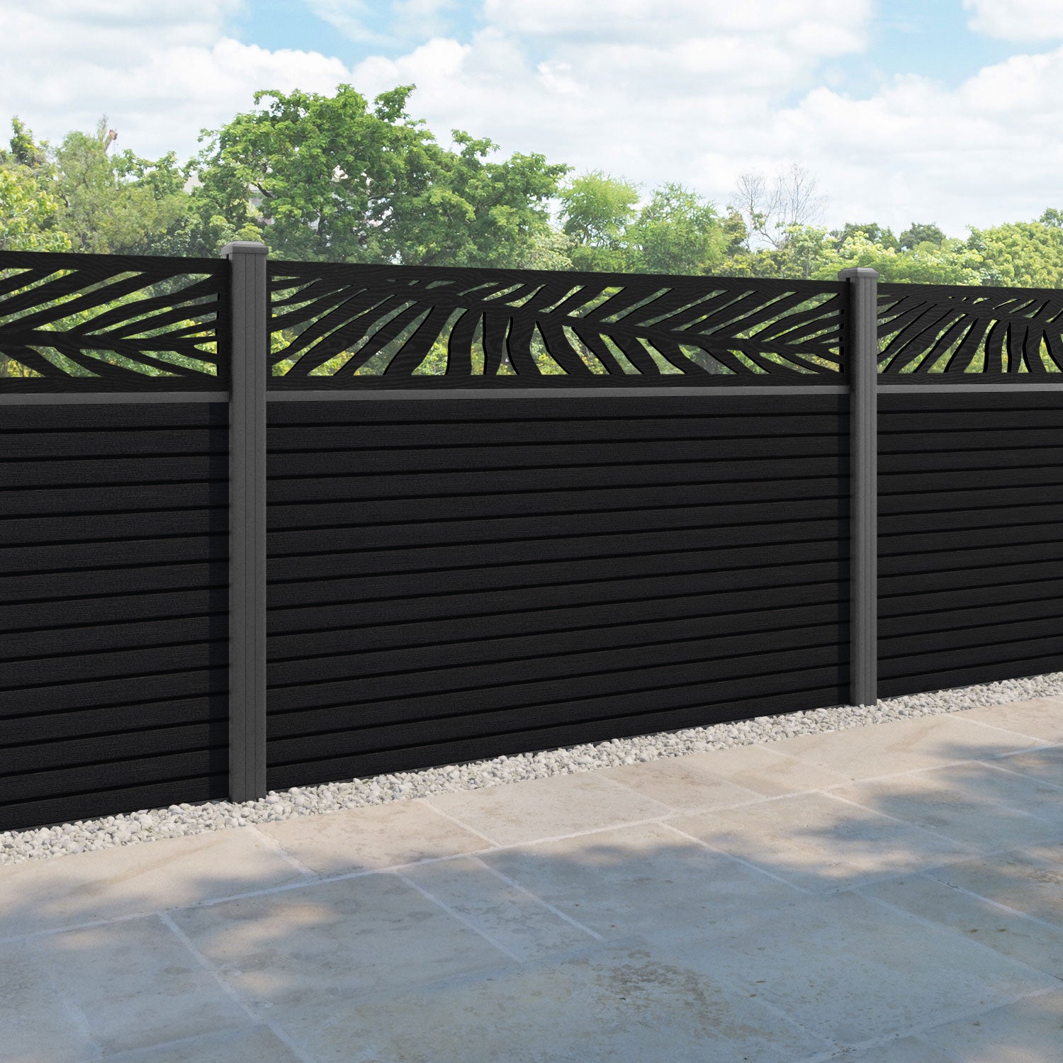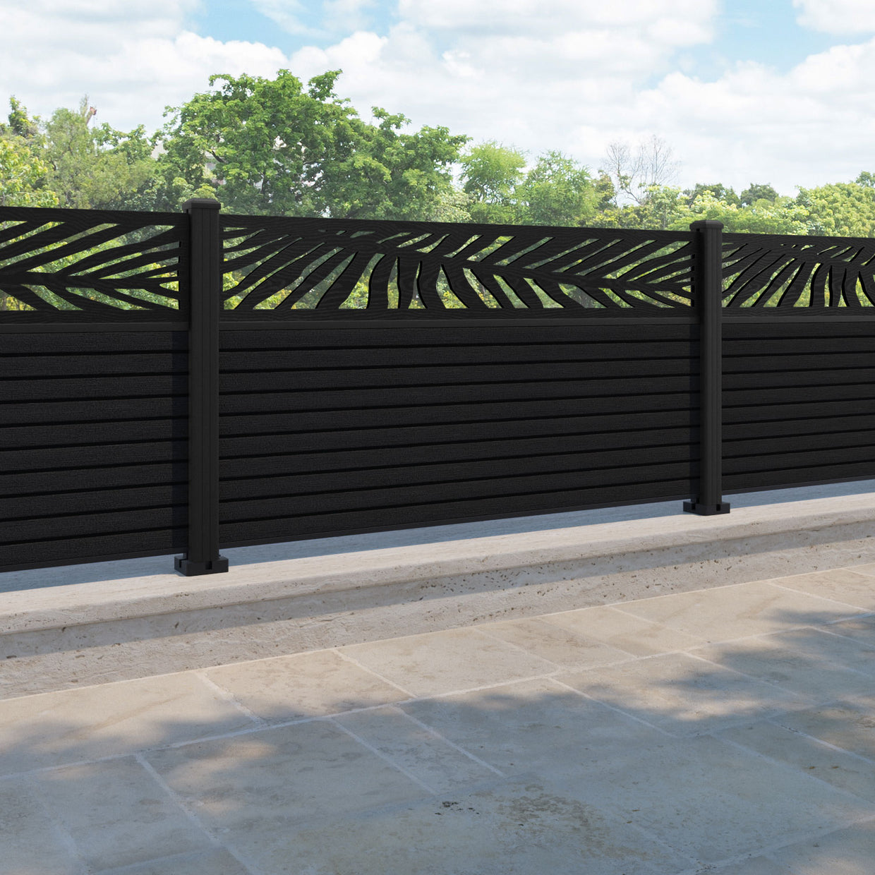 Hudson Palm Fence Panel Black - with our aluminium posts
