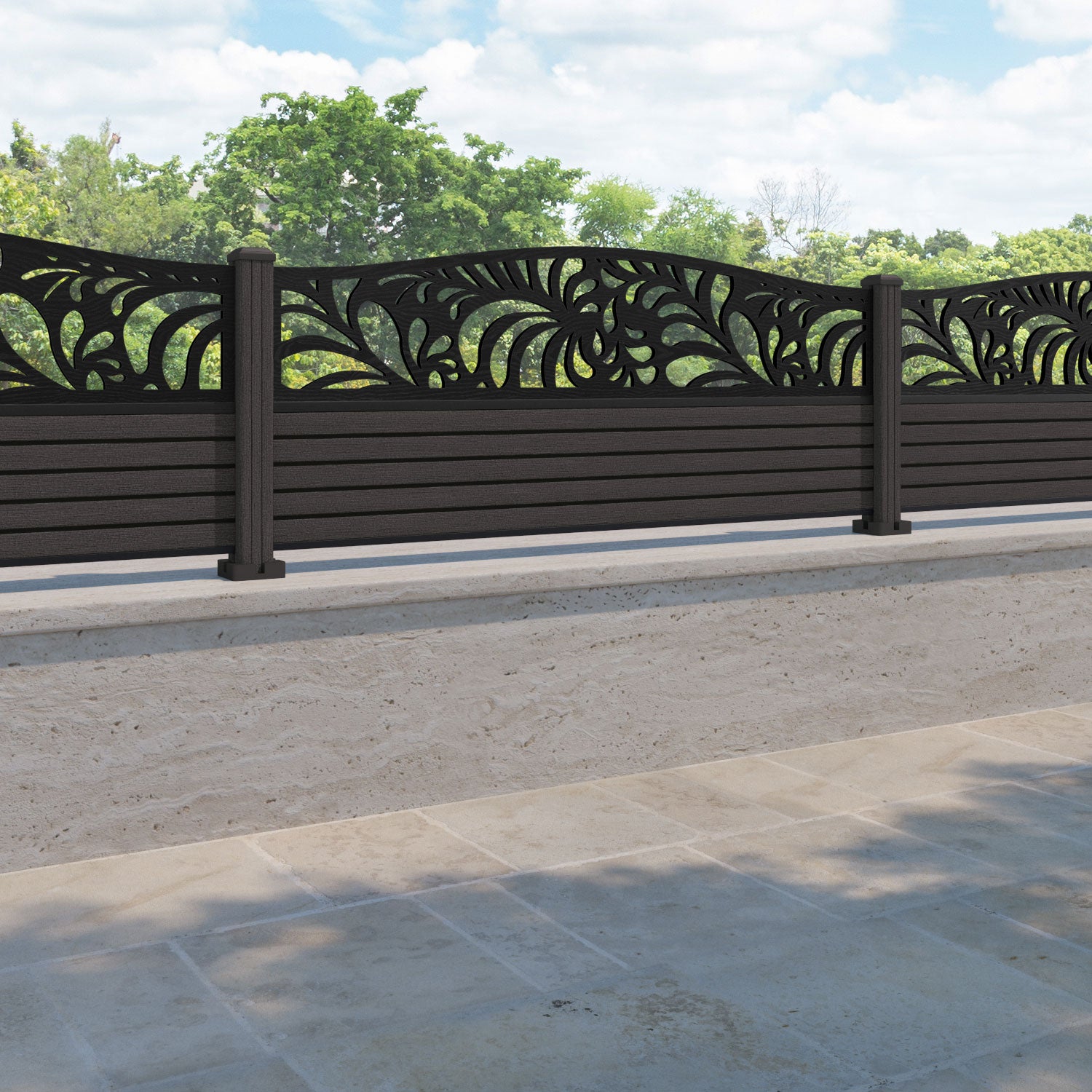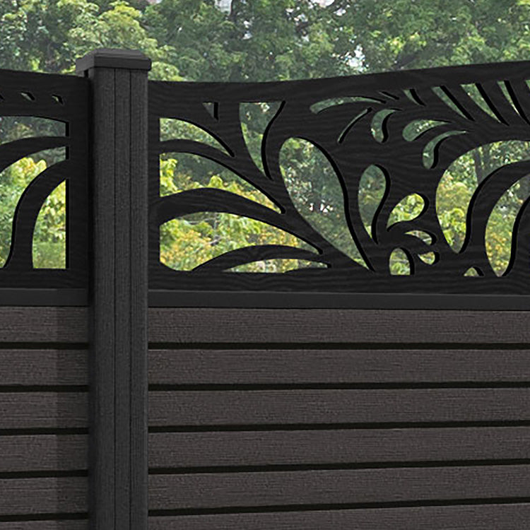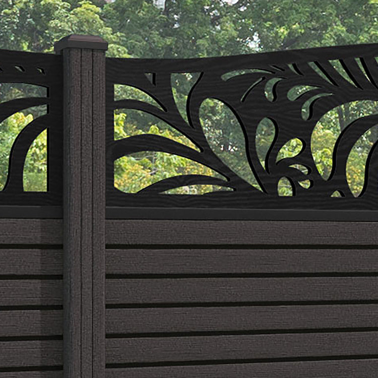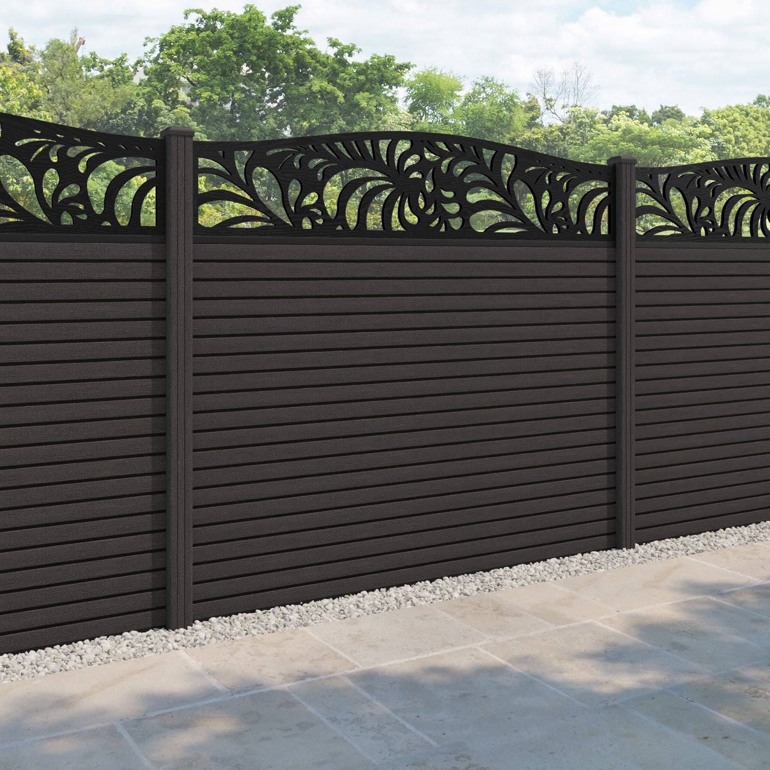 Hudson Petal Curved Top Fence Panel Dark Oak - with our composite posts