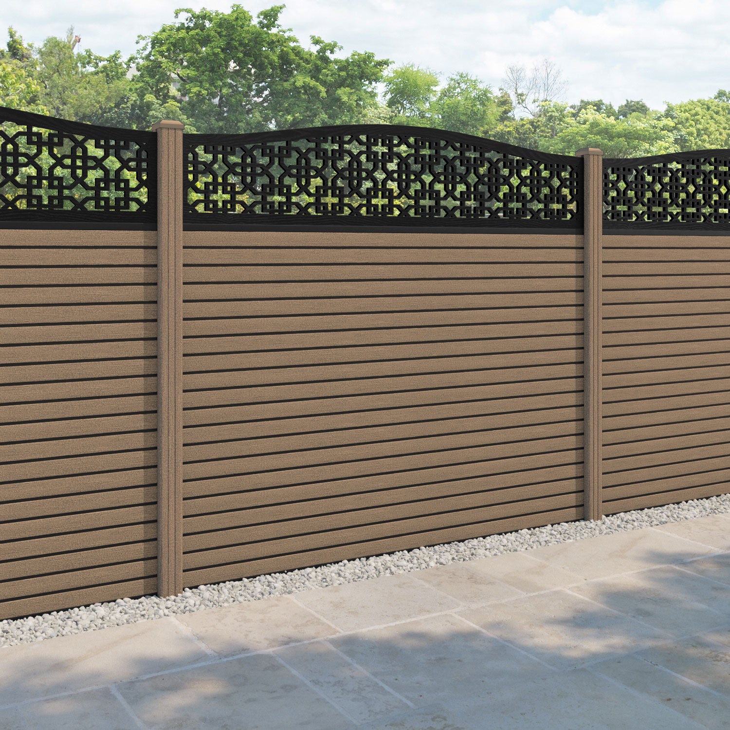 Hudson Zaria Curved Top Fence Panel Teak - with our composite posts