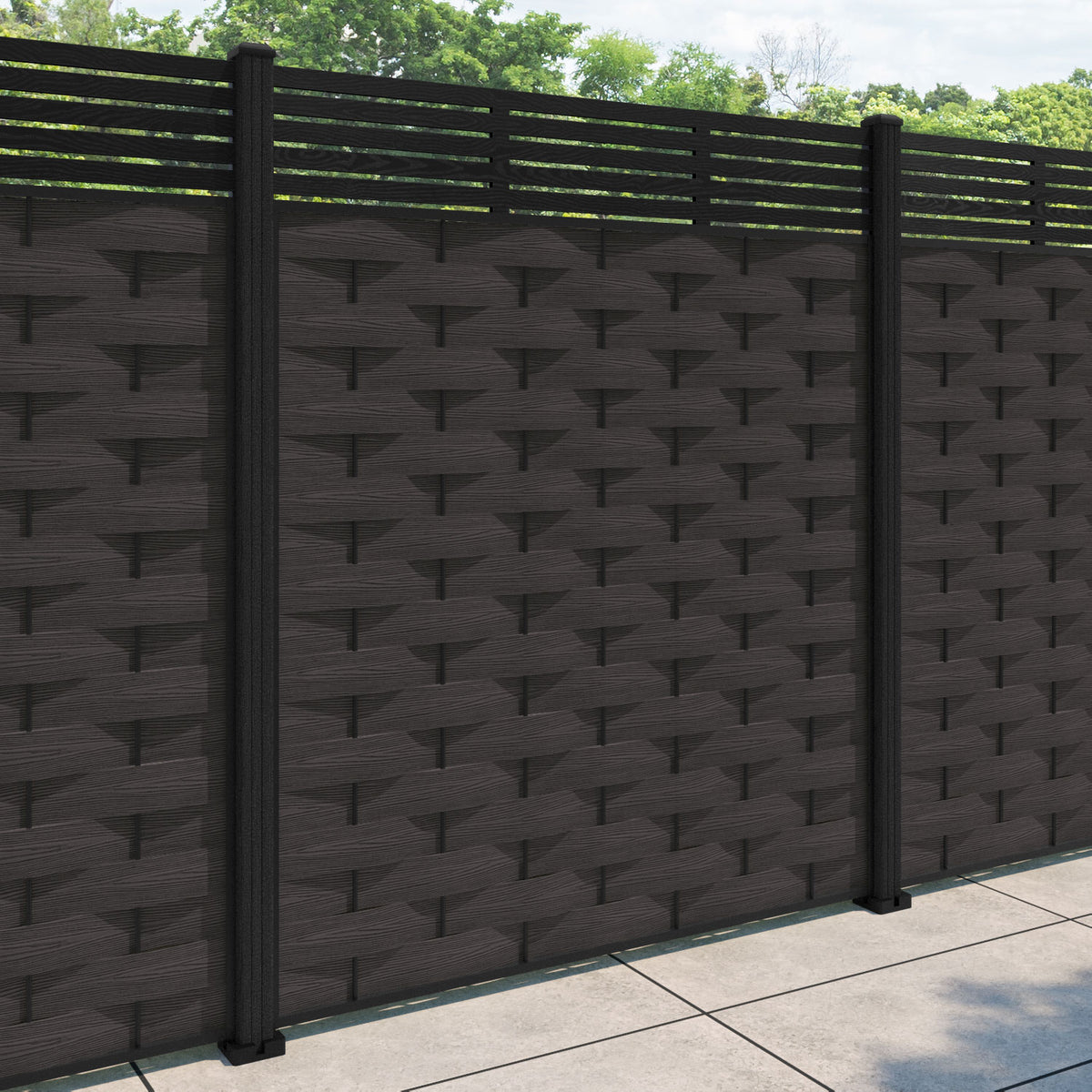 Ripple Aspen Fence Panel Dark Oak - with our composite posts