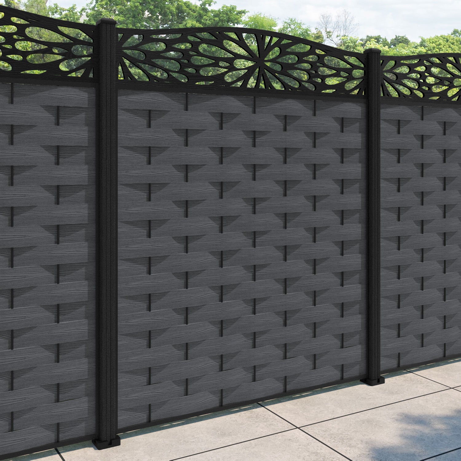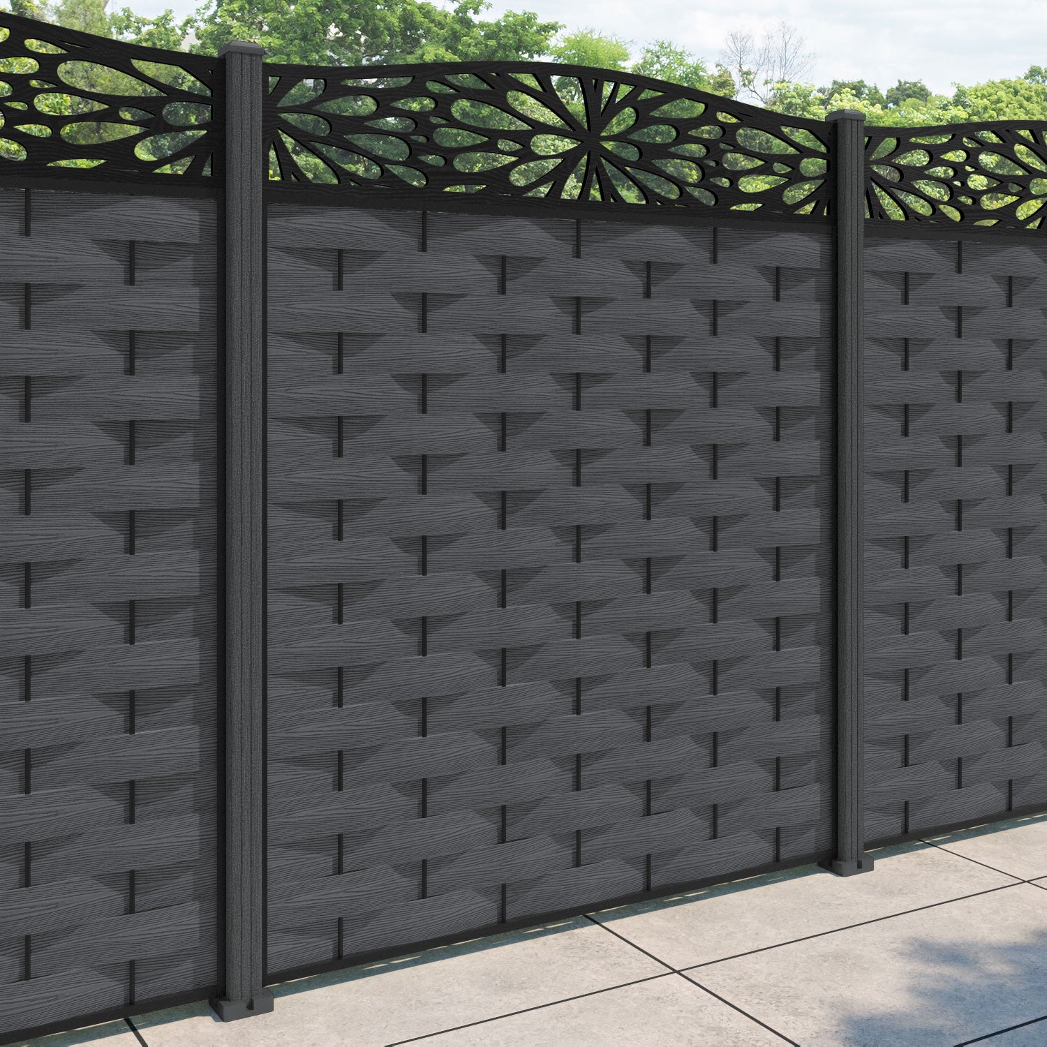 Ripple Blossom Curved Top Fence Panel Dark Grey - with our composite posts