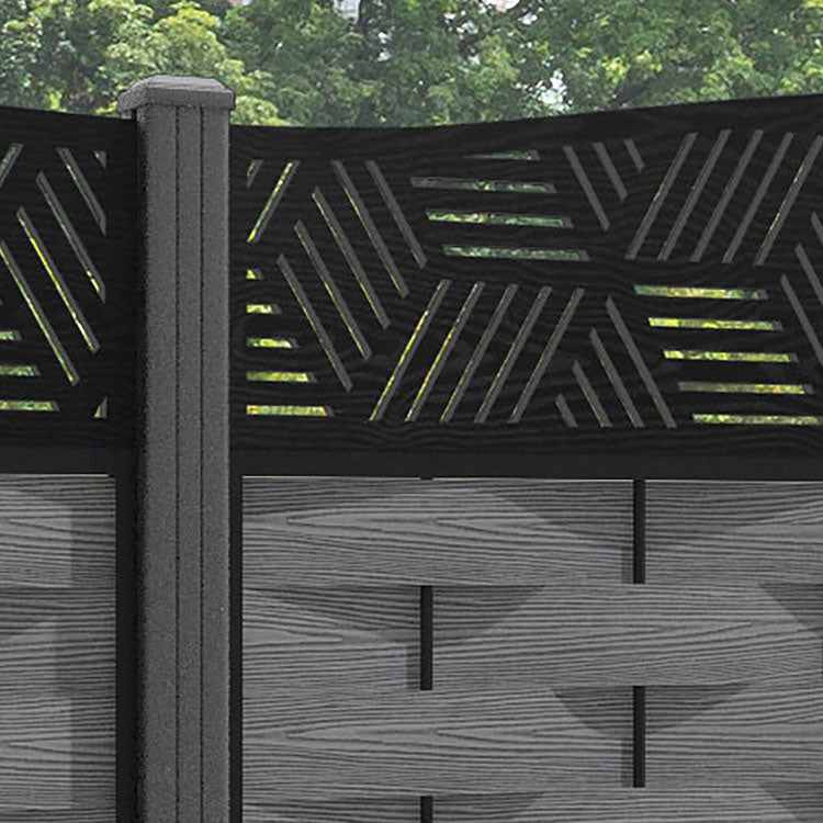 Ripple Cubed Curved Top Fence Panel - Mid Grey - with our aluminium posts