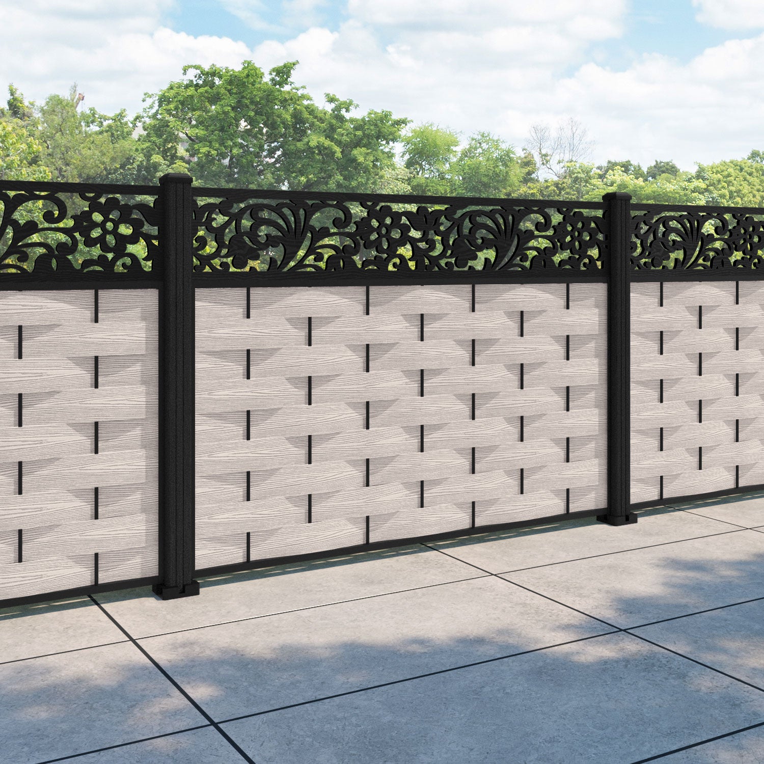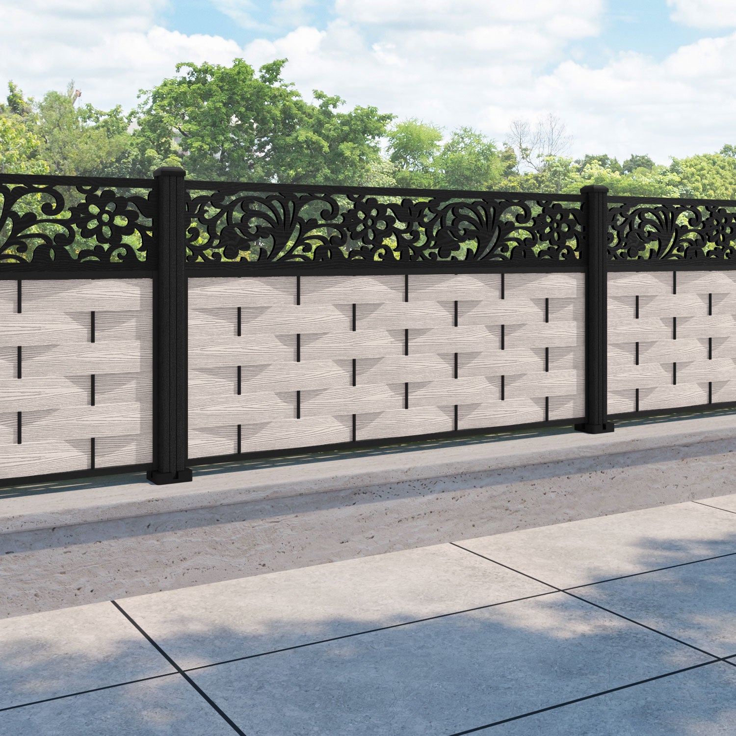 Ripple Eden Fence Panel Mid Stone - with our composite posts