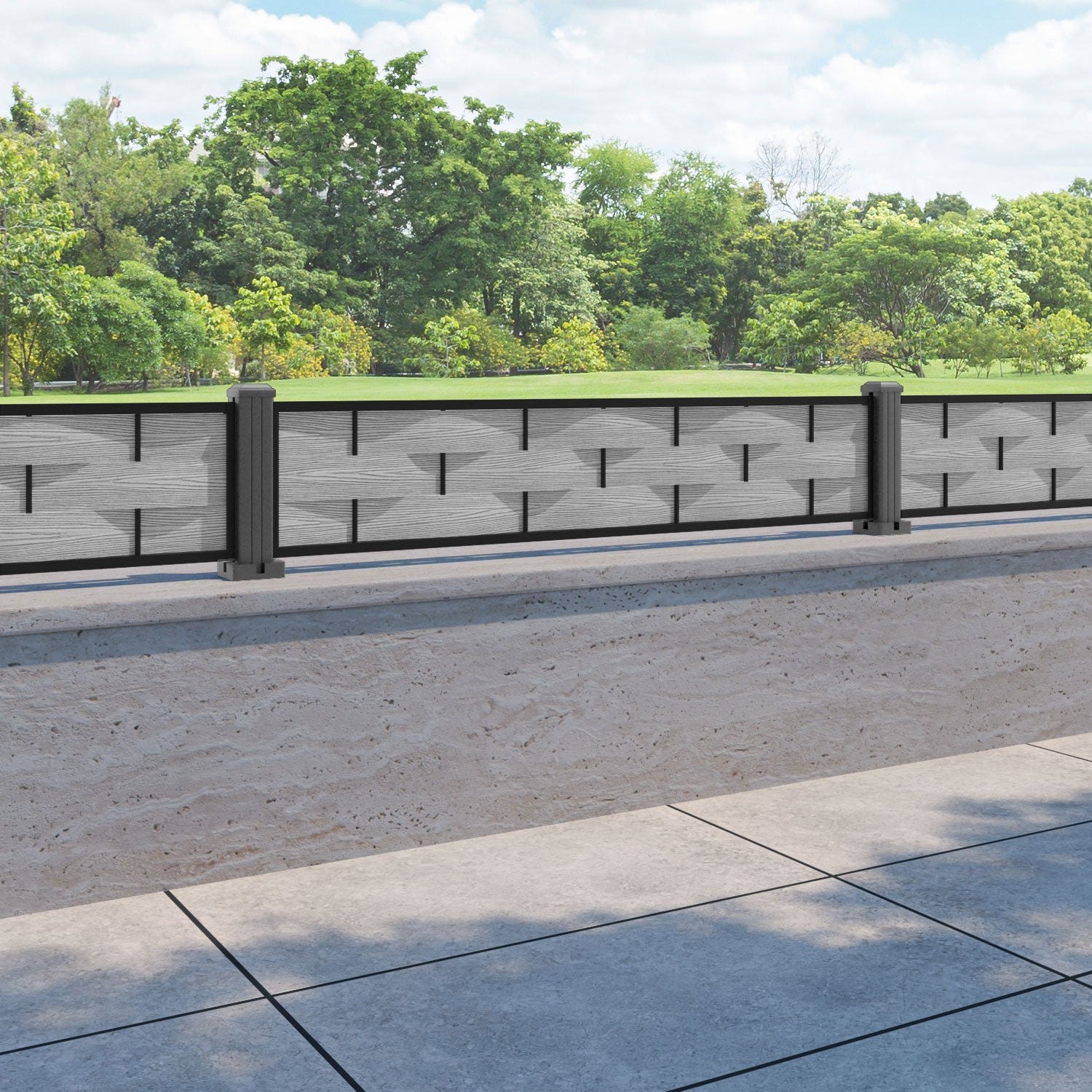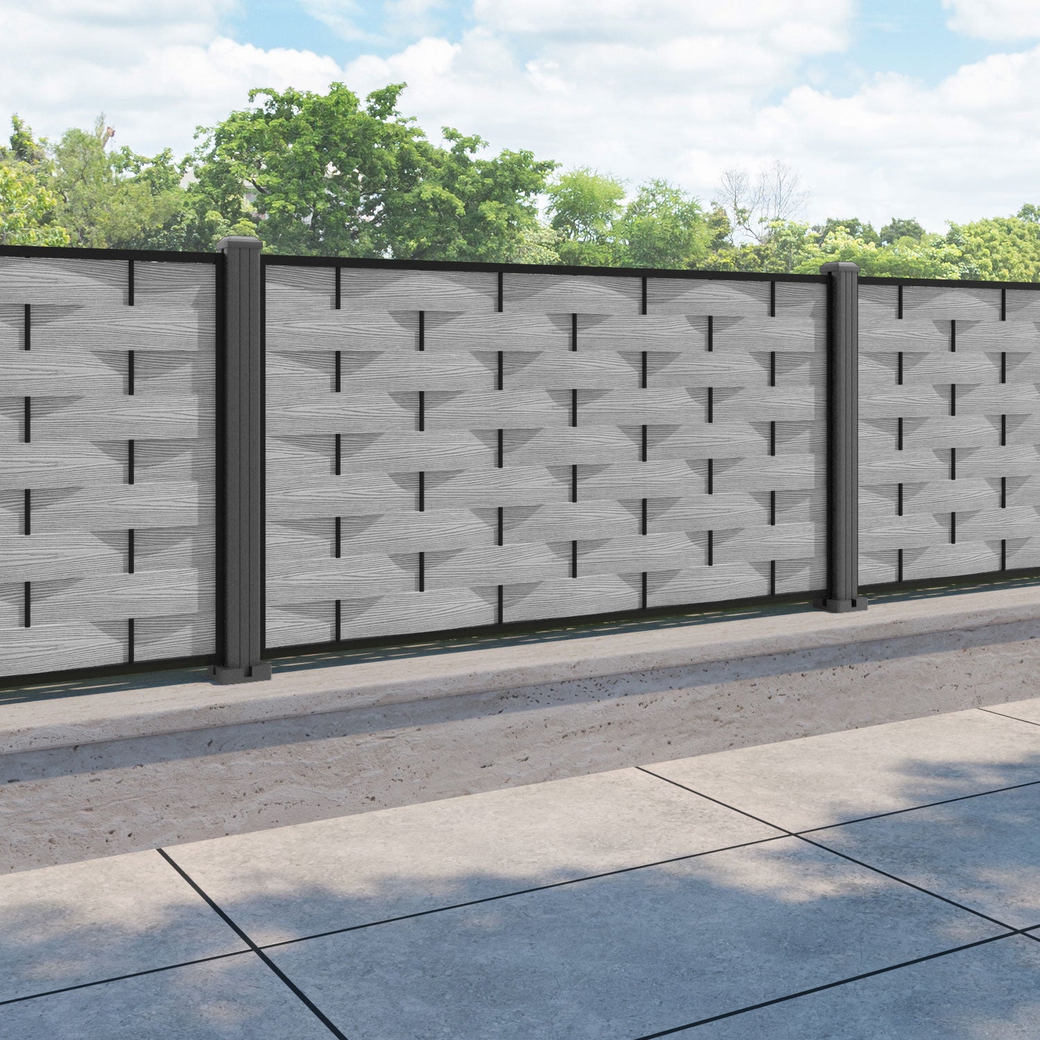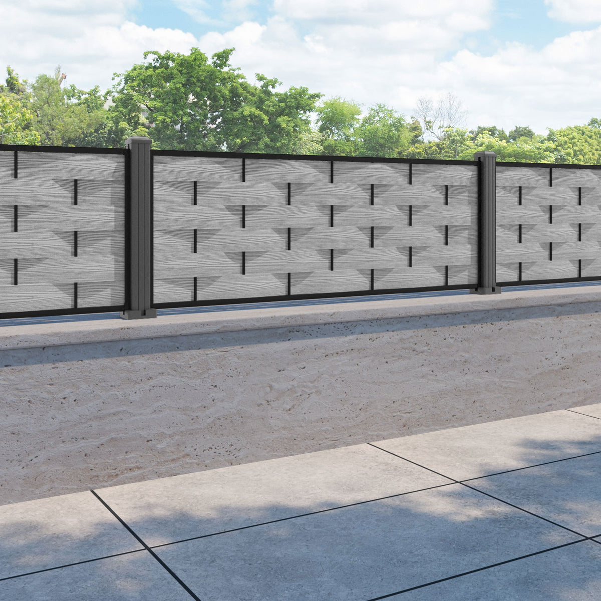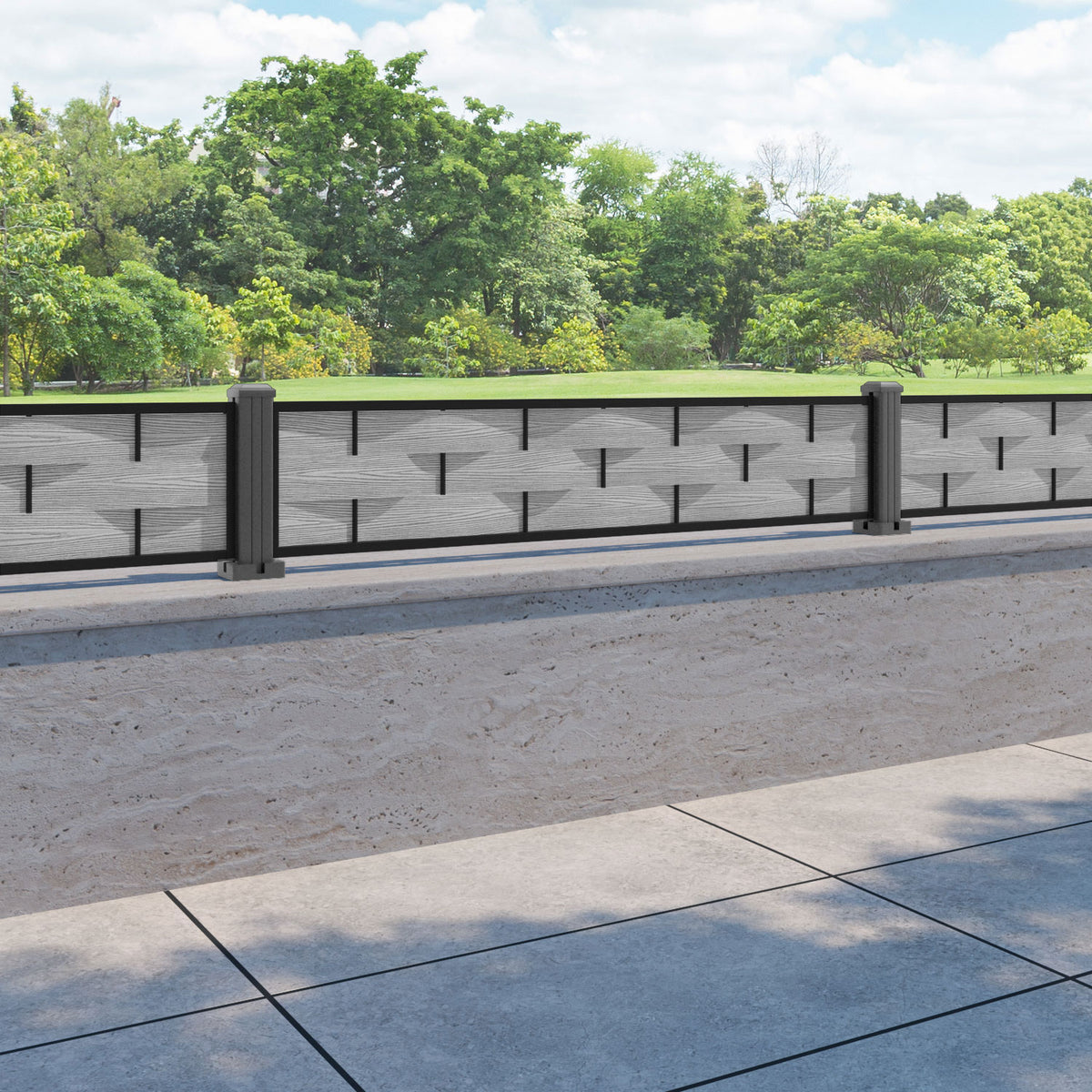 Ripple Fence Panel Light grey - with our aluminium posts
