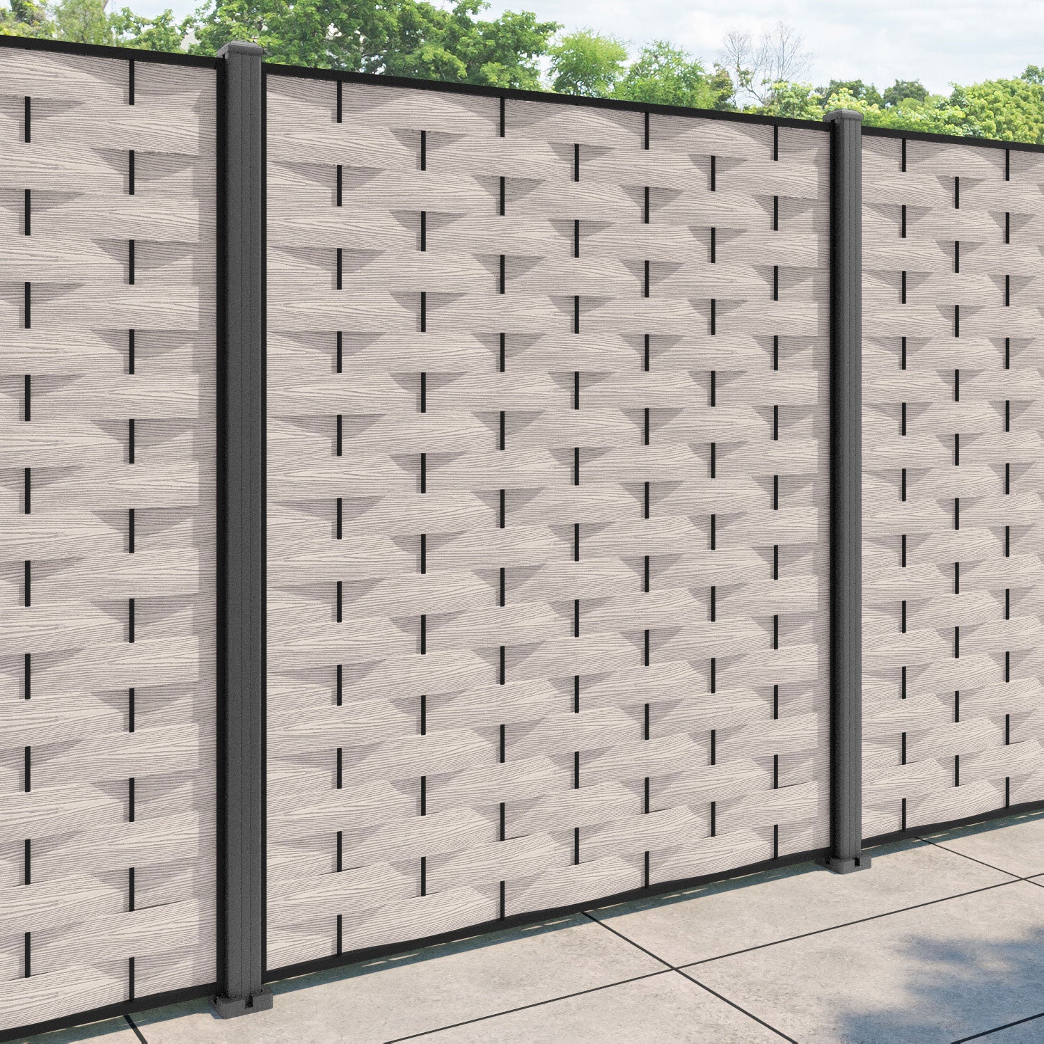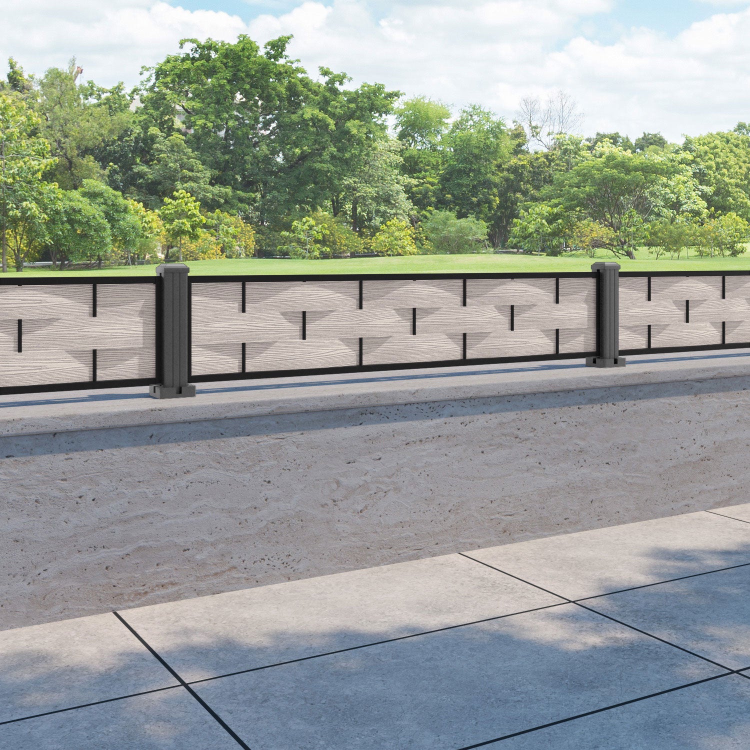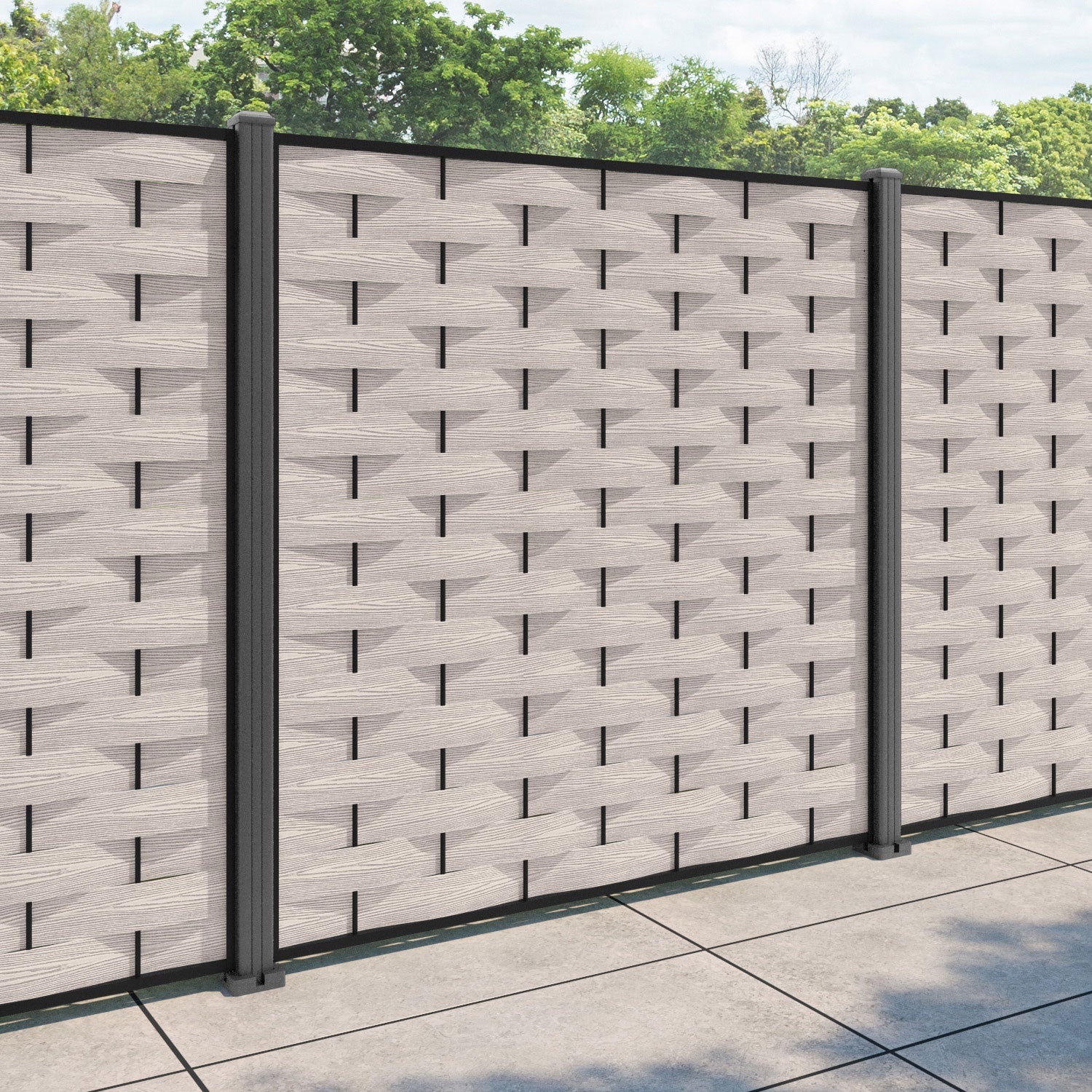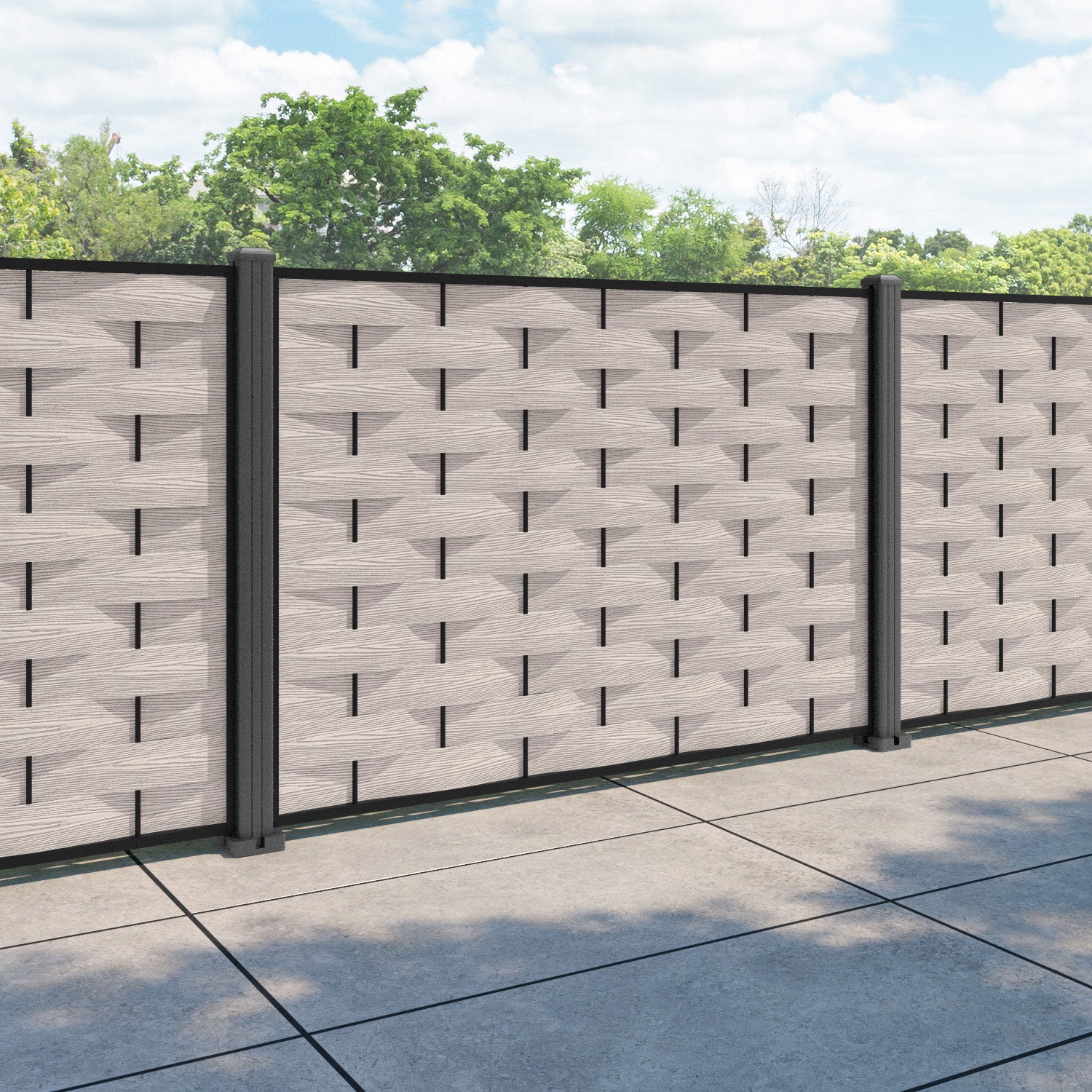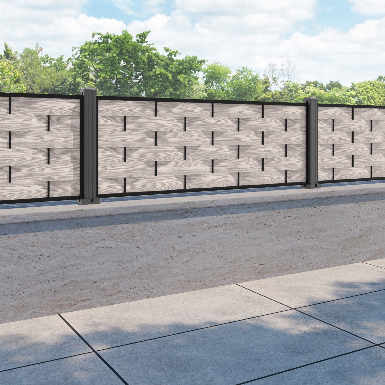 Ripple Fence Panel Mid Stone - with our aluminium posts