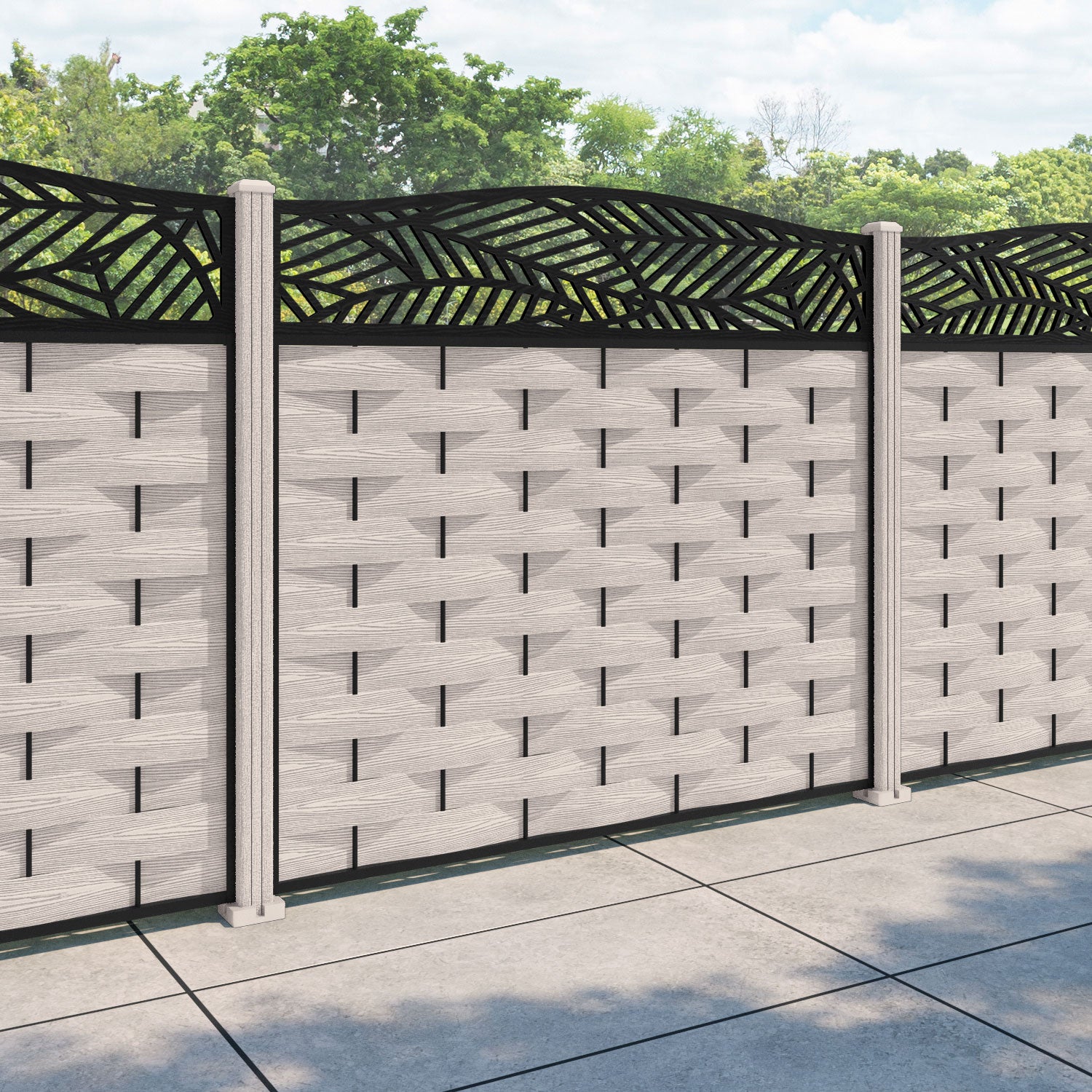 Ripple Habitat Curved Top Fence Panel Mid Stone - with our composite posts