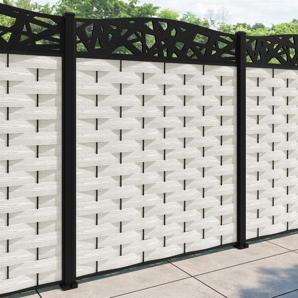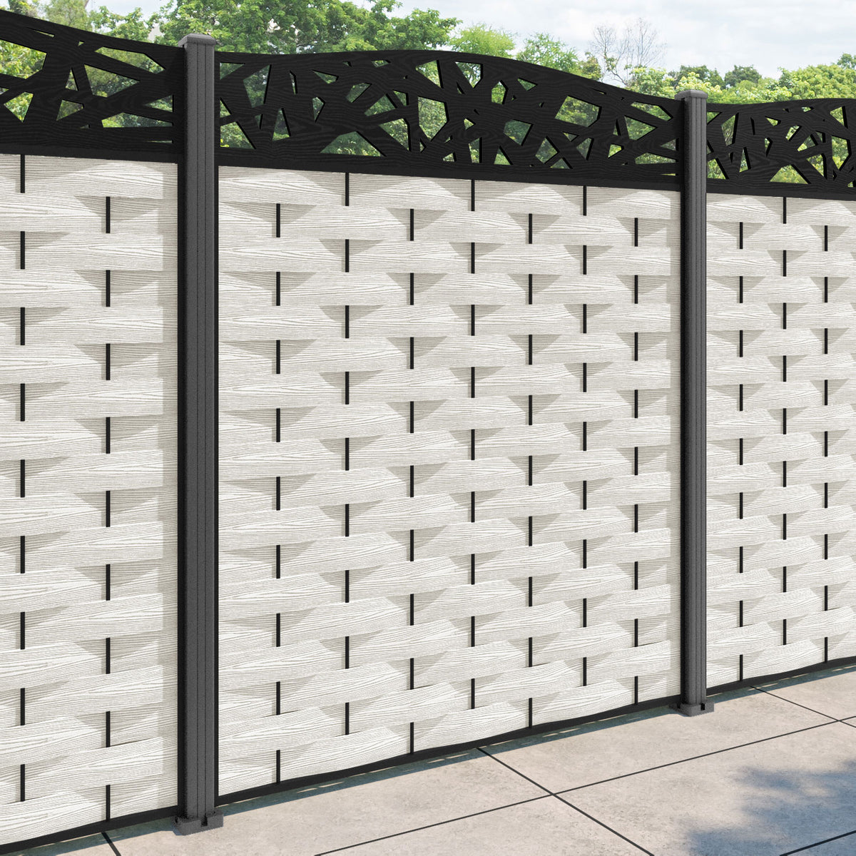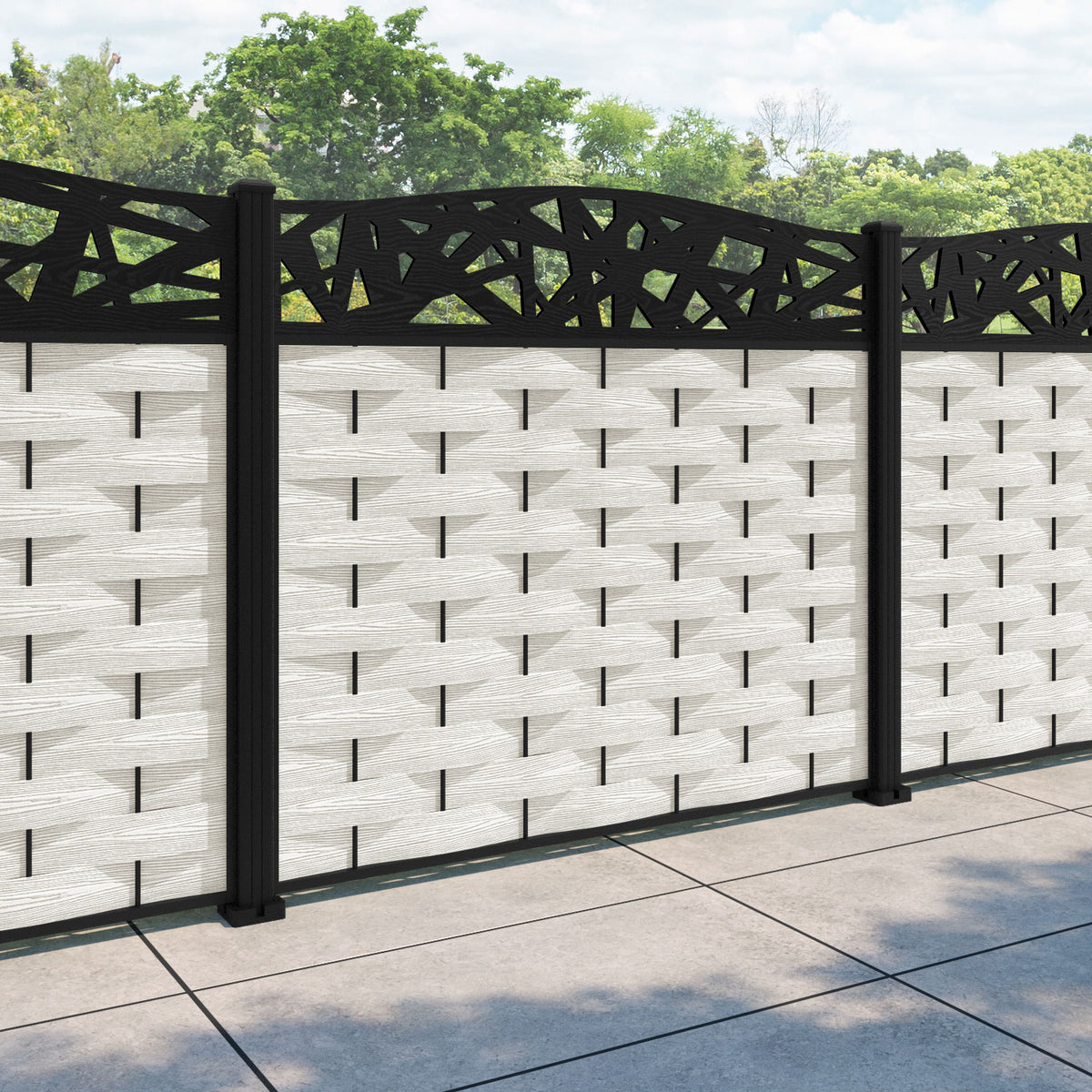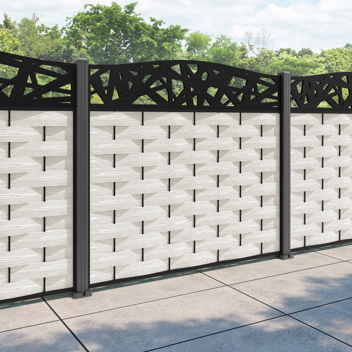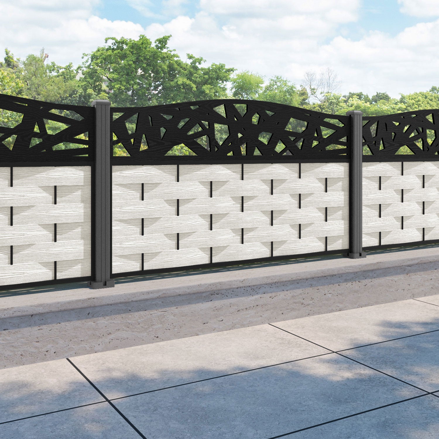 Ripple Prism Curved Top Fence Panel Light Stone - with our aluminium posts