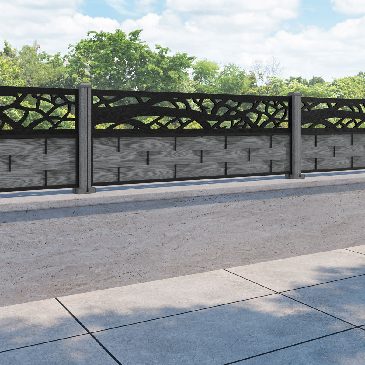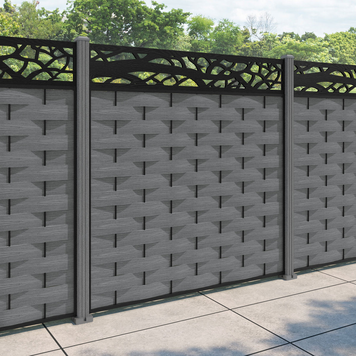 Ripple Twilight Fence Panel Mid Grey - with our composite posts