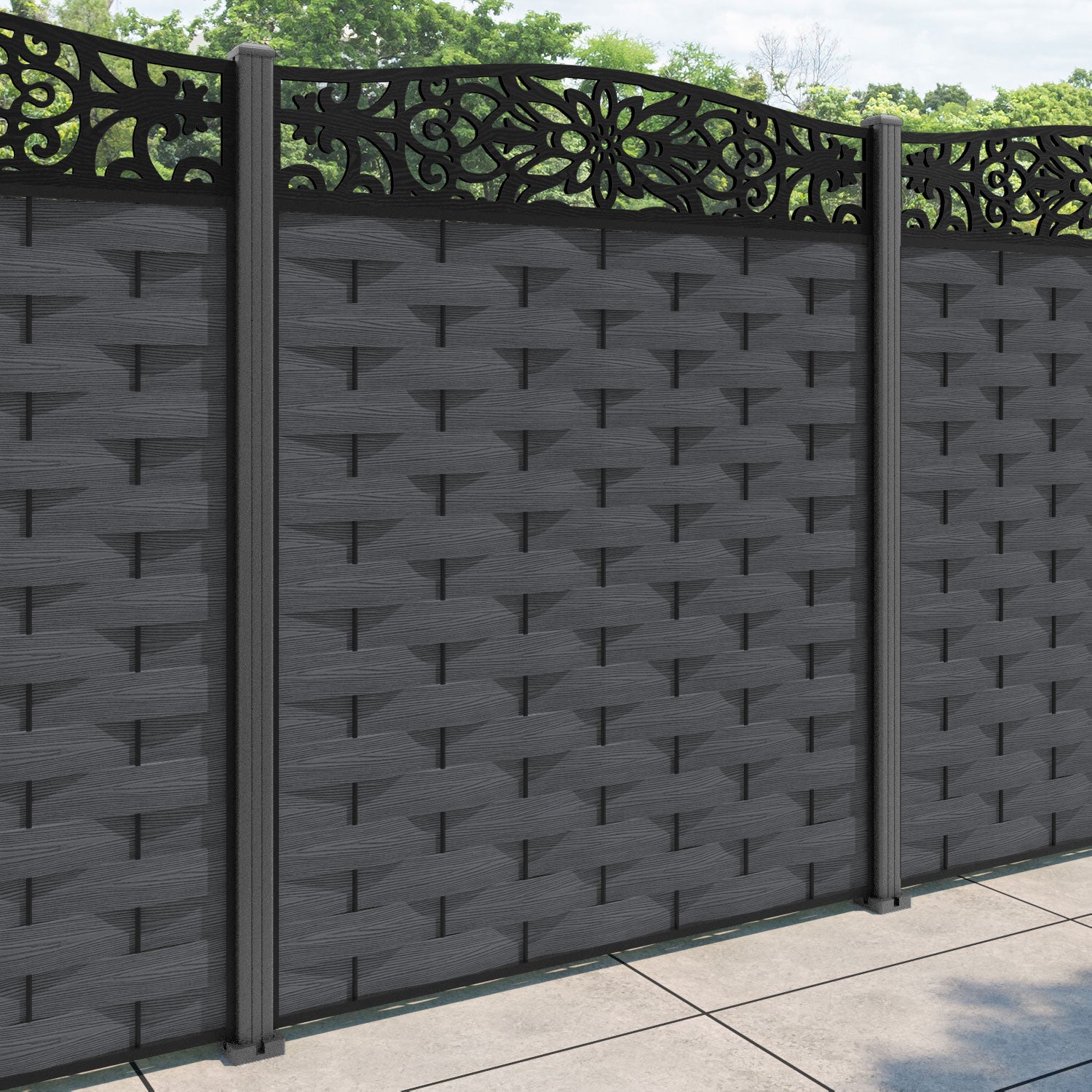 Ripple Windsor Curved Top Fence Panel Dark Grey - with our aluminium posts