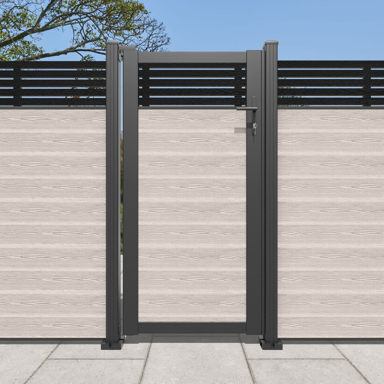 Pair your gate with our eco-friendly composite or aluminium slats for a seamless match to our fencing collections, ensuring a stylish and cohesive look.